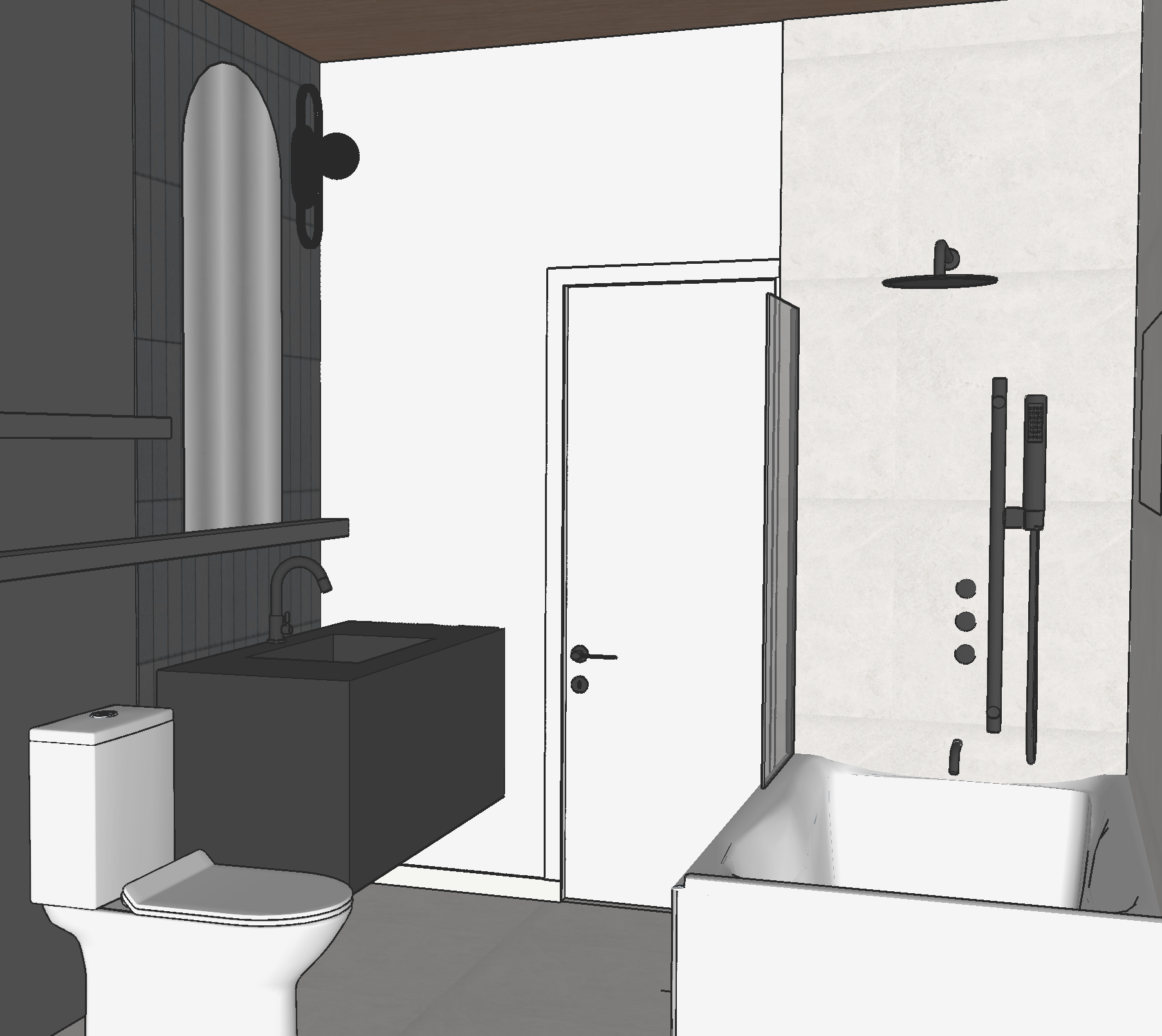 add plants on the selves and light bulb on wall scounce next to miroir not on shower faucet