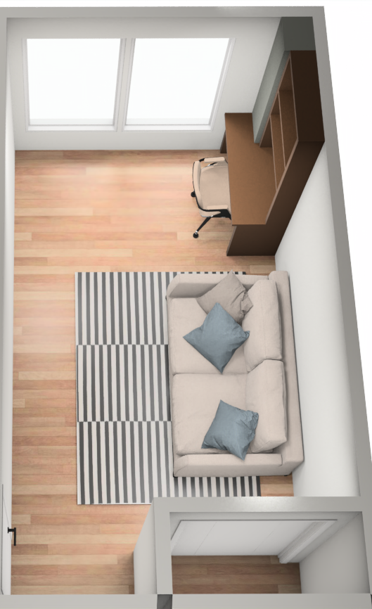 add pictures on the wall add books on the shelves and laptop on the desk