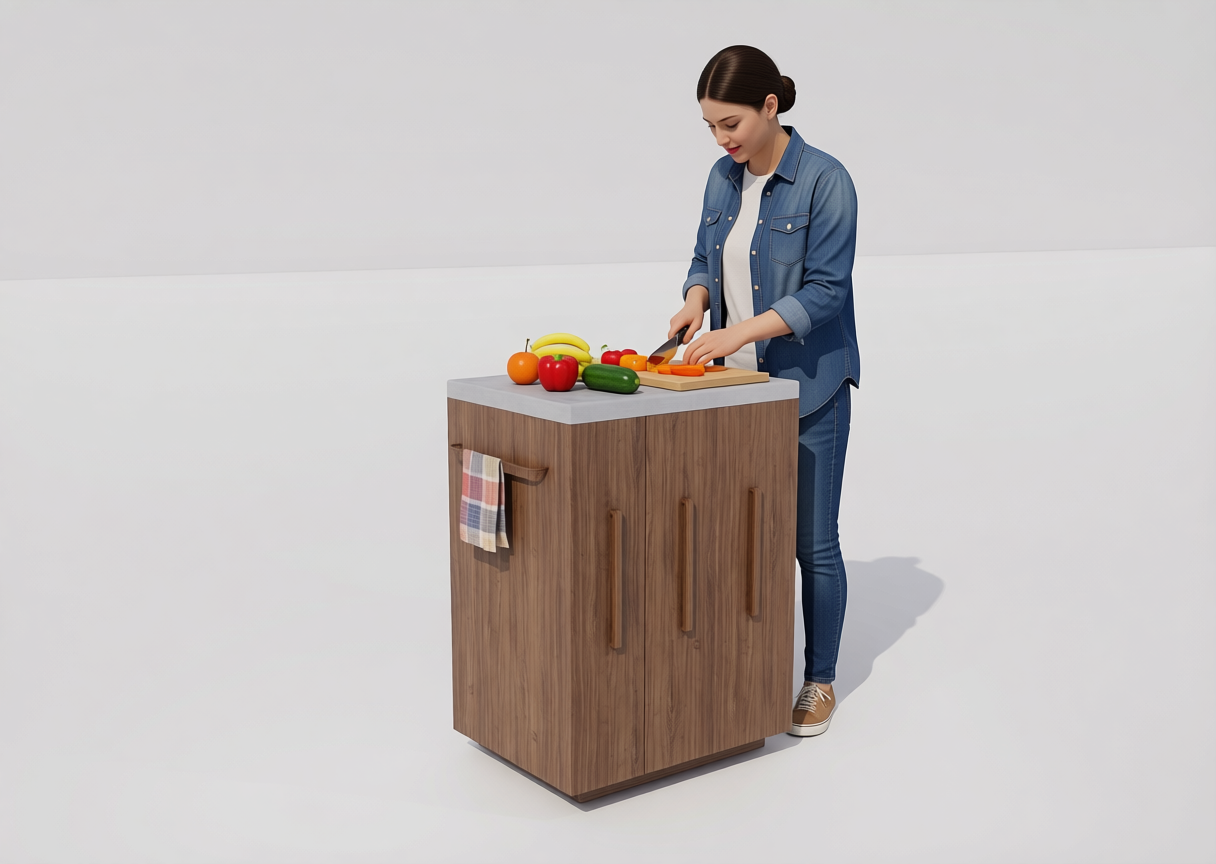 do not change the image i sent you add realistic modern and luxary kitchen backround and change the vegetables to realistic ones