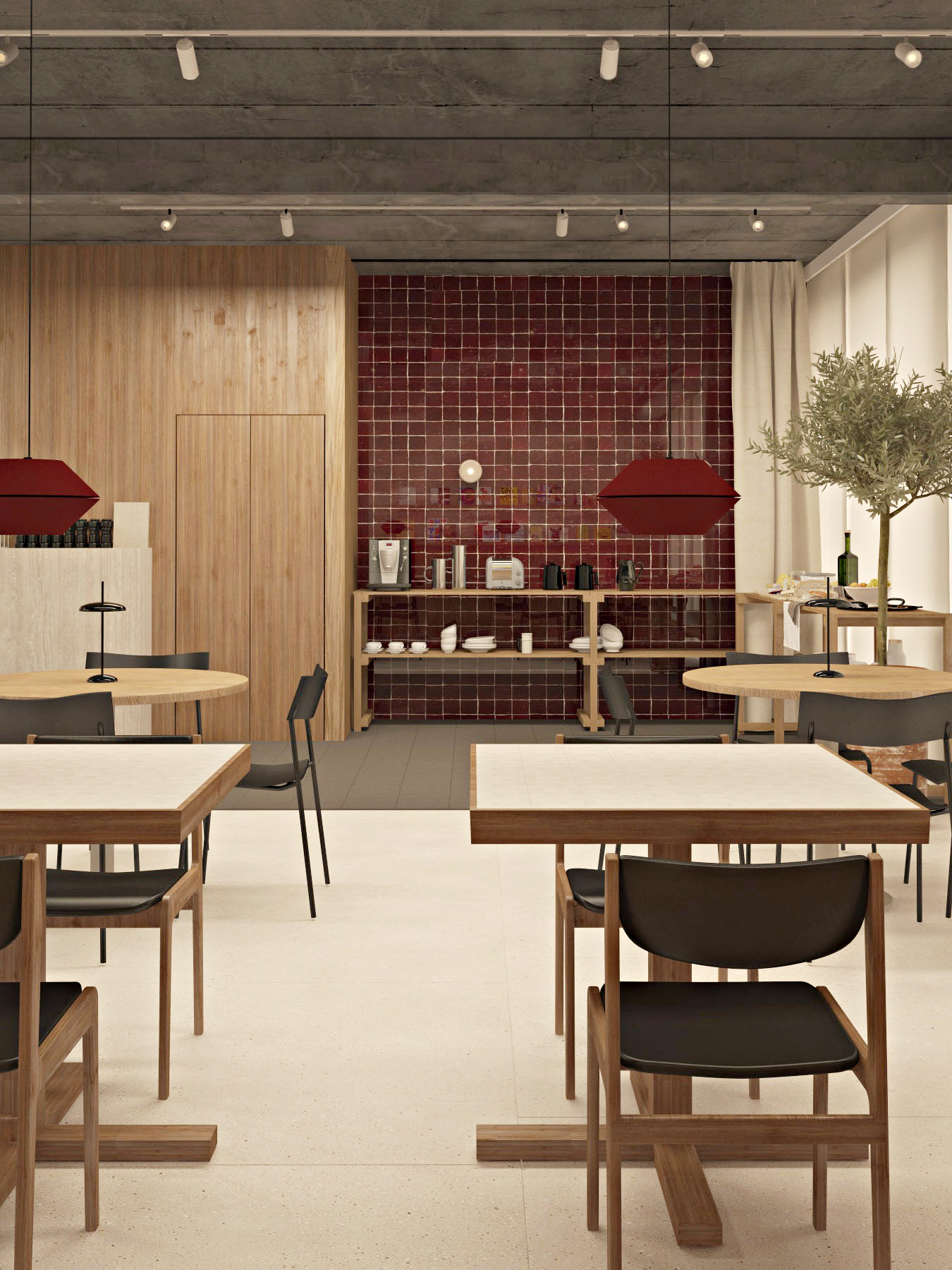 enhance the realism of this architectural visualization without changing any materials colors textures finishes furniture layout proportions or design elements keep all existing materials and color tones exactly as they are improve photorealism by refining natural lighting global illumination soft shadows subtle reflections accurate light bounce and realistic exposure add physically accurate light behavior micro contrast depth and subtle imperfections very delicate surface irregularities fine texture detail while preserving the original look improve realism through physically correct daylight simulation soft contact shadows realistic ambient occlusion subtle material roughness refinement without altering material type or color enhanced depth of field very subtle natural cinematic but natural color grading no color shift high dynamic range lighting do not redesign restyle recolor replace materials or modify objects maintain the exact same design only increase realism and photographic quality output should look like a professional architectural photograph ultra realistic natural balanced high end visualization scene is iluminated by artificial light table top is made from 10x10 beige tile