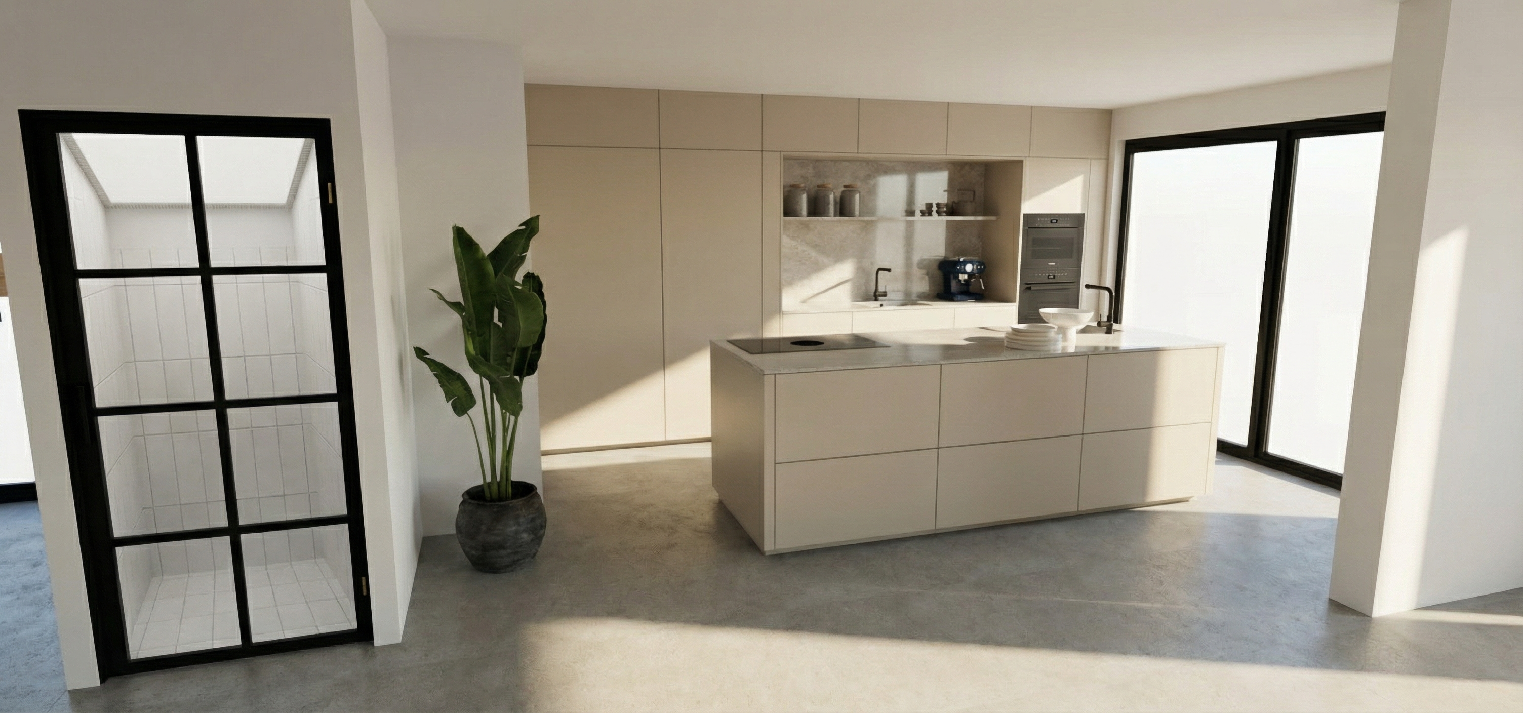 add a glass door at the shower from wall to wall