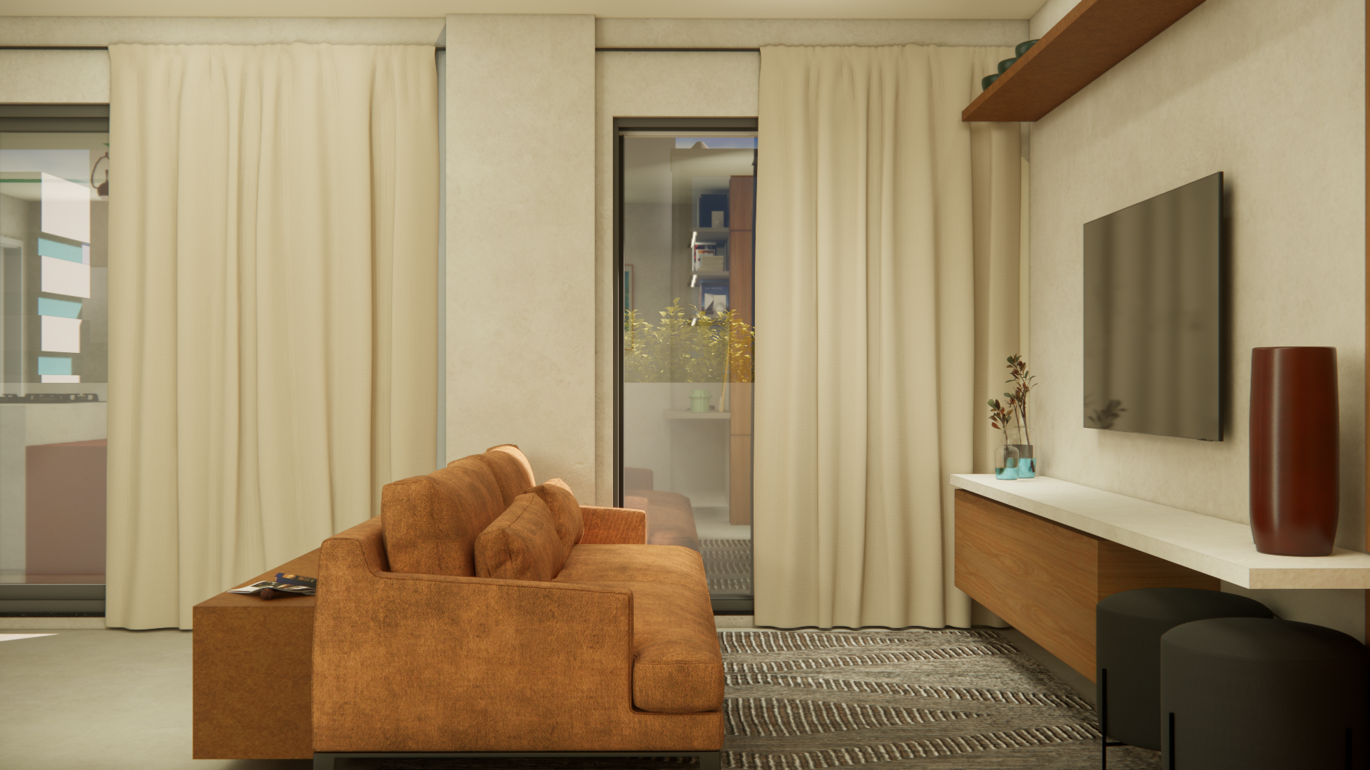 create a photorealist render natural light in the background the city of curitiba with buildings from the 1990s