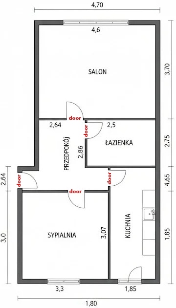 convert this floor plan into a realistic isometric 3d view of a full house show the space from an elevated angle with furniture walls and details visible modern cozy apartment interior scandinavian style wood floor in living room and bedroom tiles in bathroom add realistic furniture layout white door to salon corridor przedpok j bathroom azienka bedroom sypialnia kitche kuchnia dark door from the outside to the apartment use the same furniture as shows on the plan do not change the orientation of the floorplan