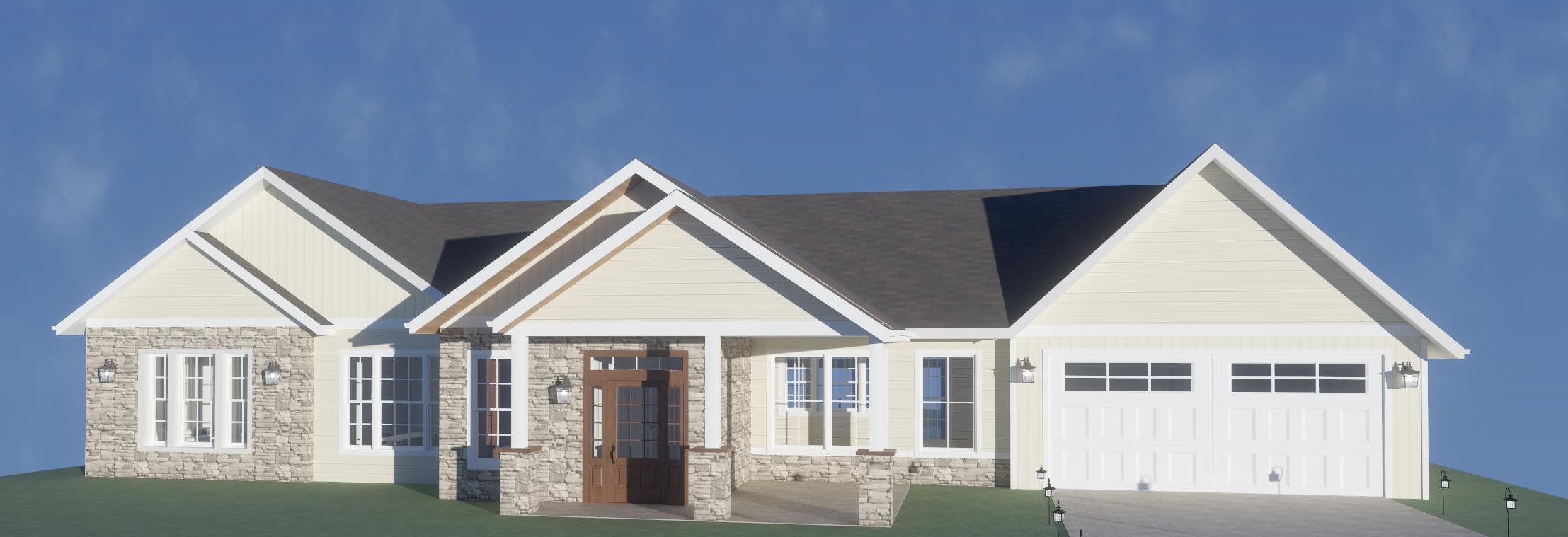 please make this exterior rendering look a bit more realistic while still maintaining color of finishes
