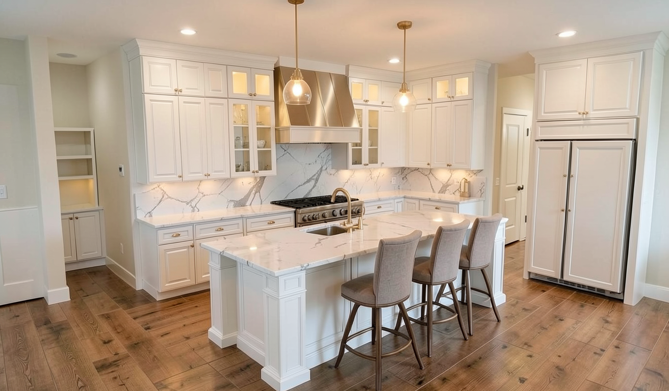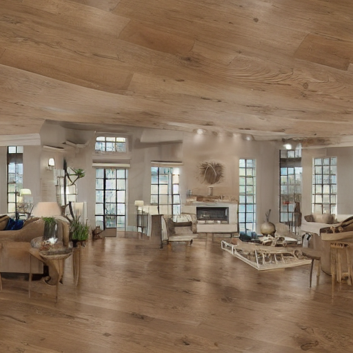 rustic oak flooring tudor large scale open floor plan long uniform straight planks equal width floorboards consistent plank sizing heavy grain and prominent knots seamless texture