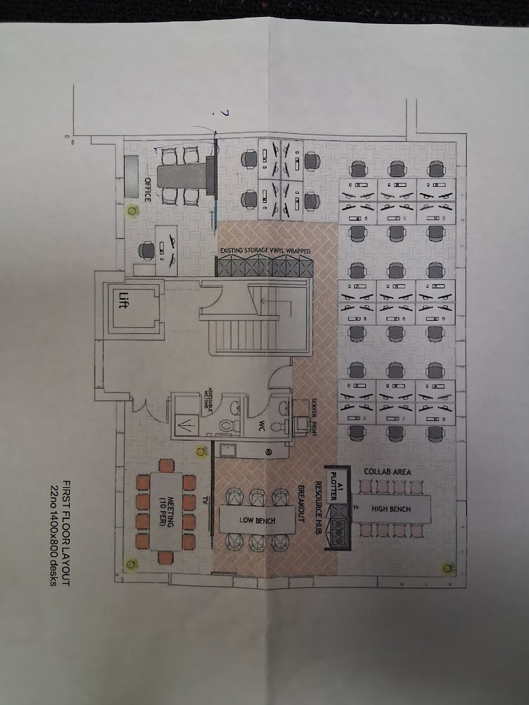 convert this floor plan into a realistic isometric 3d view of a full house show the space from an elevated angle with furniture walls and details visible create an elegant modern office floor plan rendering use a monochromatic color scheme with varying shades of grey and white for walls and office partitions incorporate natural wood textures with warm beige for floors adding a sense of warmth and sophistication enhance the atmosphere with soft ambient lighting to create a welcoming and collaborative environment include sleek minimalist furniture in black and metallic finishes enliven the space with subtle accents of greenery for a refreshing touch overall the design should be a harmonious blend of functionality and style use the same furniture as shows on the plan do not change the orientation of the floorplan