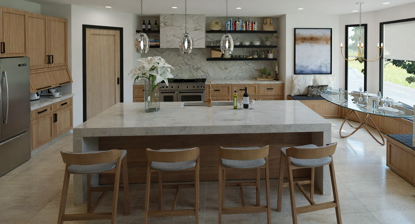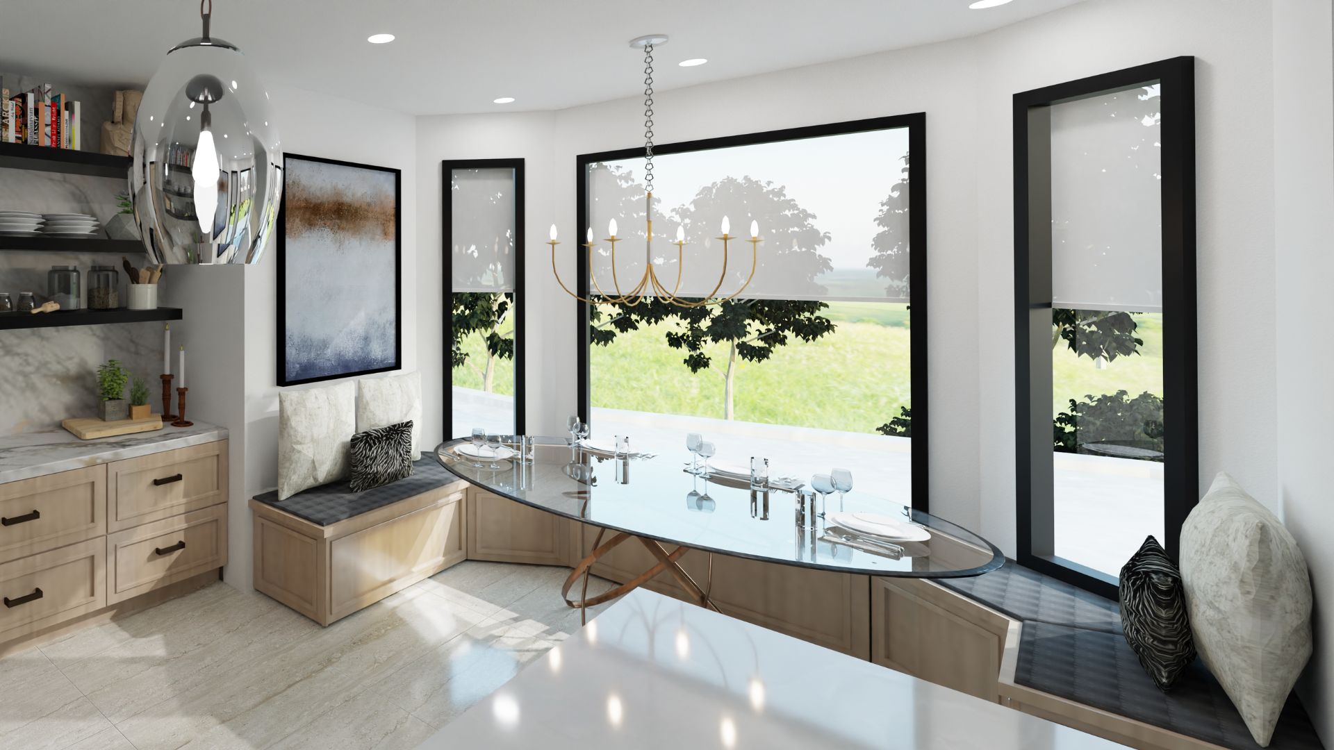 make photorealistic brighten make the outside view from window a golfcourse make window glass look more visable turn the lights on