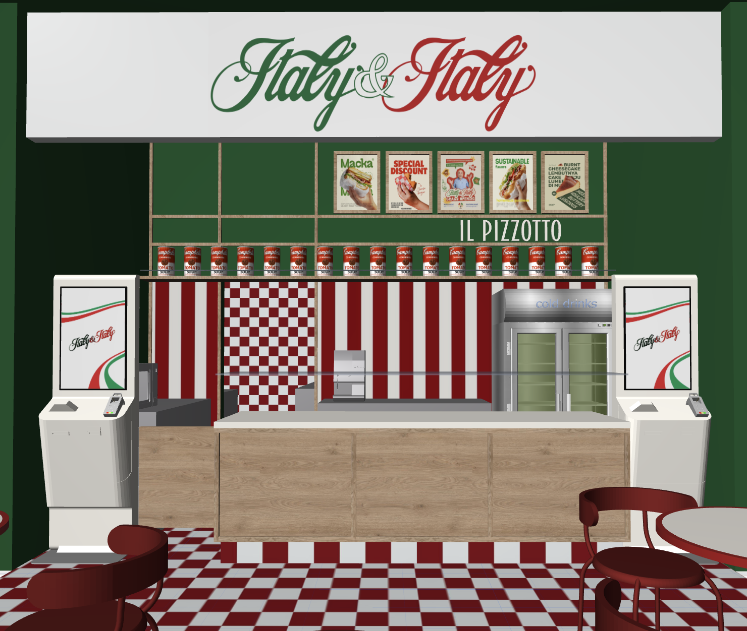 luci d effetto calde siamo in un centro commerciale di giorno aggiungi cibo street food sul bancone frontale i banconi dietro sono di acciaio