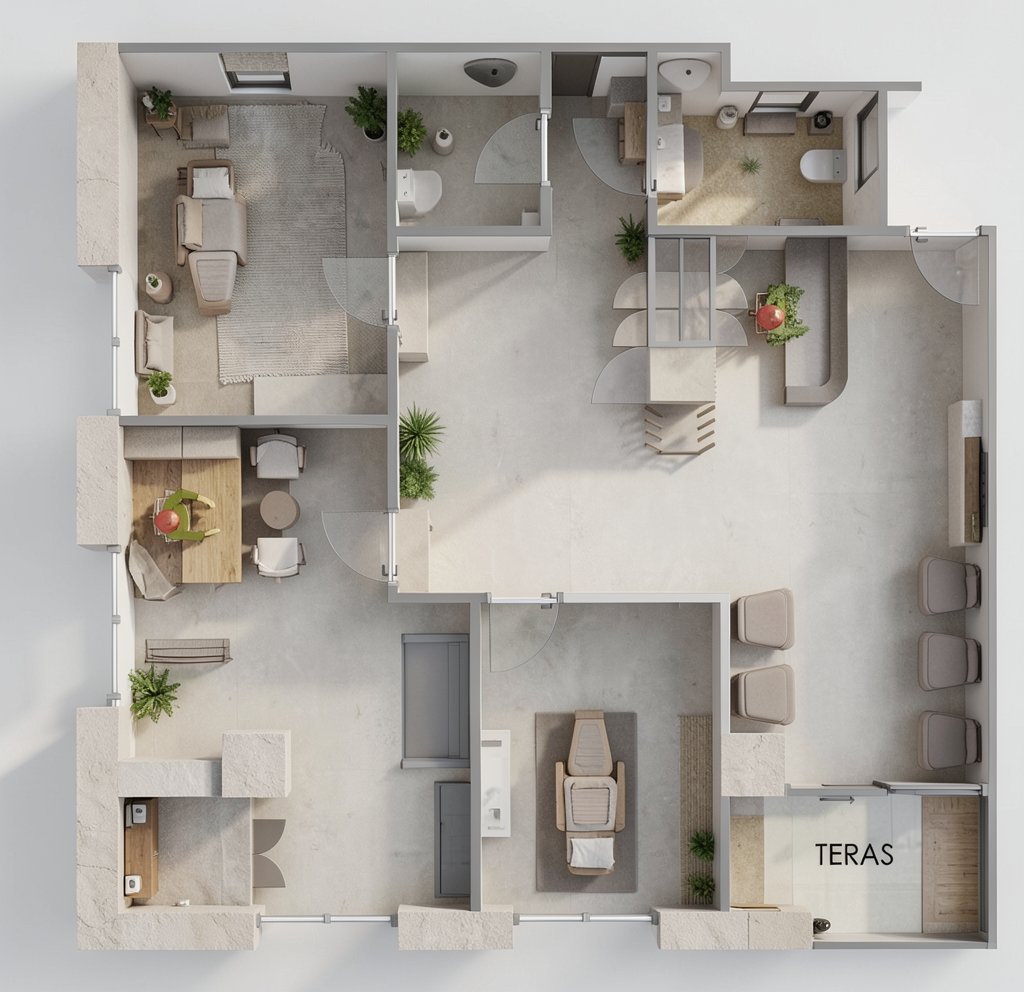 high resolution interior render emphasizing material textures only exposed red brown brick wall with natural variation and soft mortar lines large industrial style windows with white mullions clear daylight streaming in smooth white interior walls adjacent to brick light neutral woven rug texture on the floor warm wood tones with subtle grain for any horizontal surfaces soft diffused natural lighting with gentle shadows ultra realistic surface detail crisp edges no stylization no furniture specificity maintain contemporary industrial modern material palette