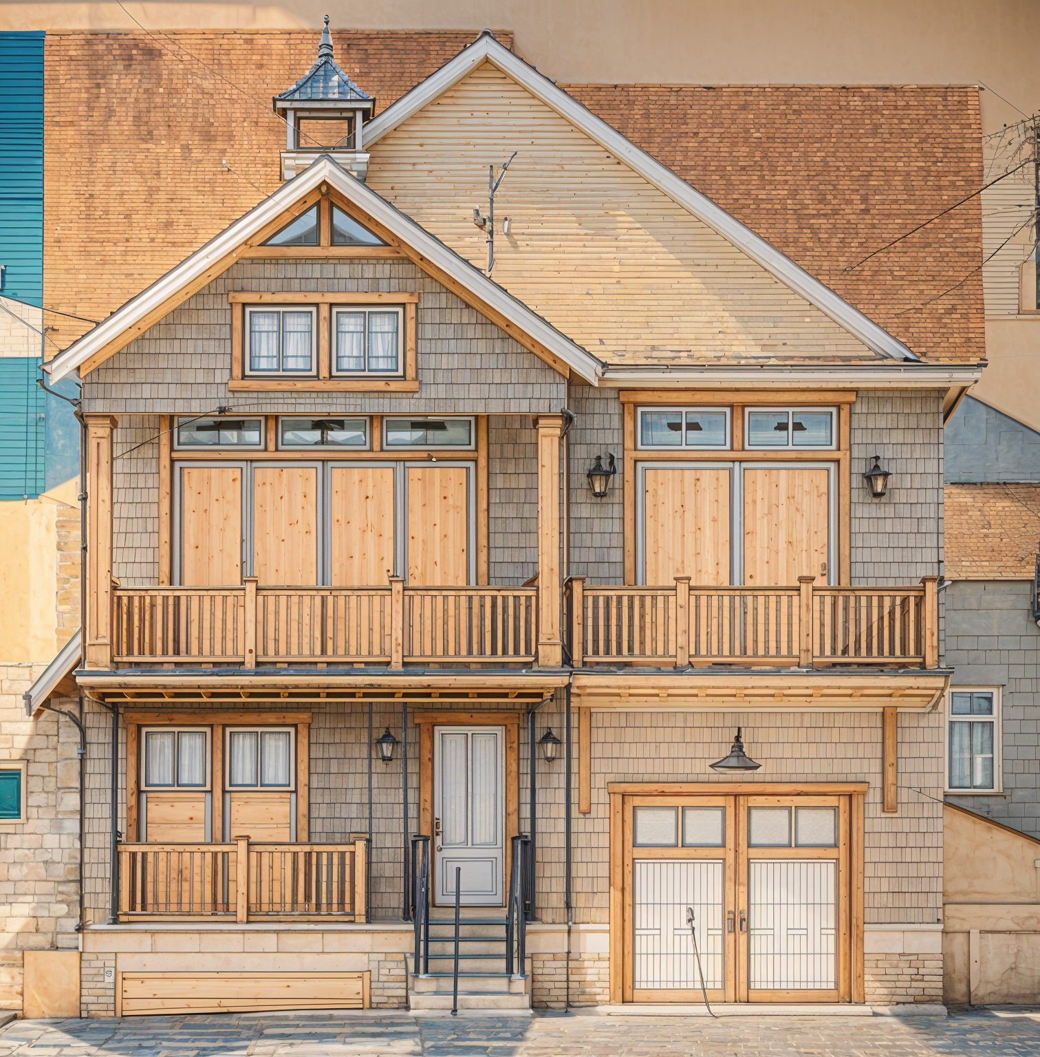 black roof white windows white garage door black trim along the roof and white siding keep brick texture but paint it white