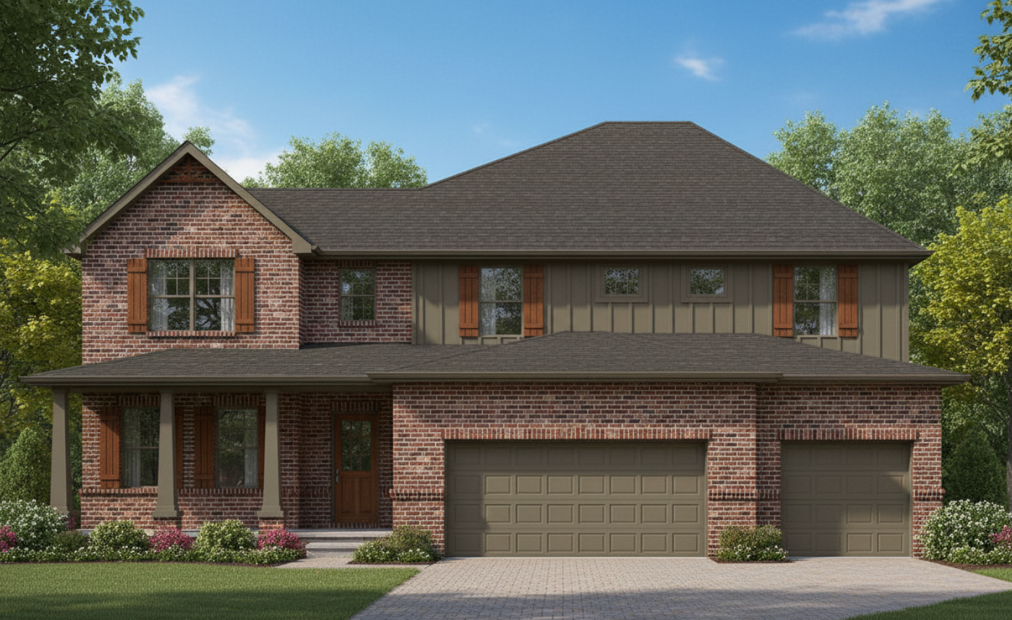 use a combination of brick and stone white trim with gray brick and stone black front door and shutters