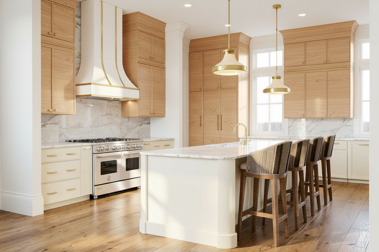 keep everything as it is except change the lower cabinets and the island to be an off white paint finish