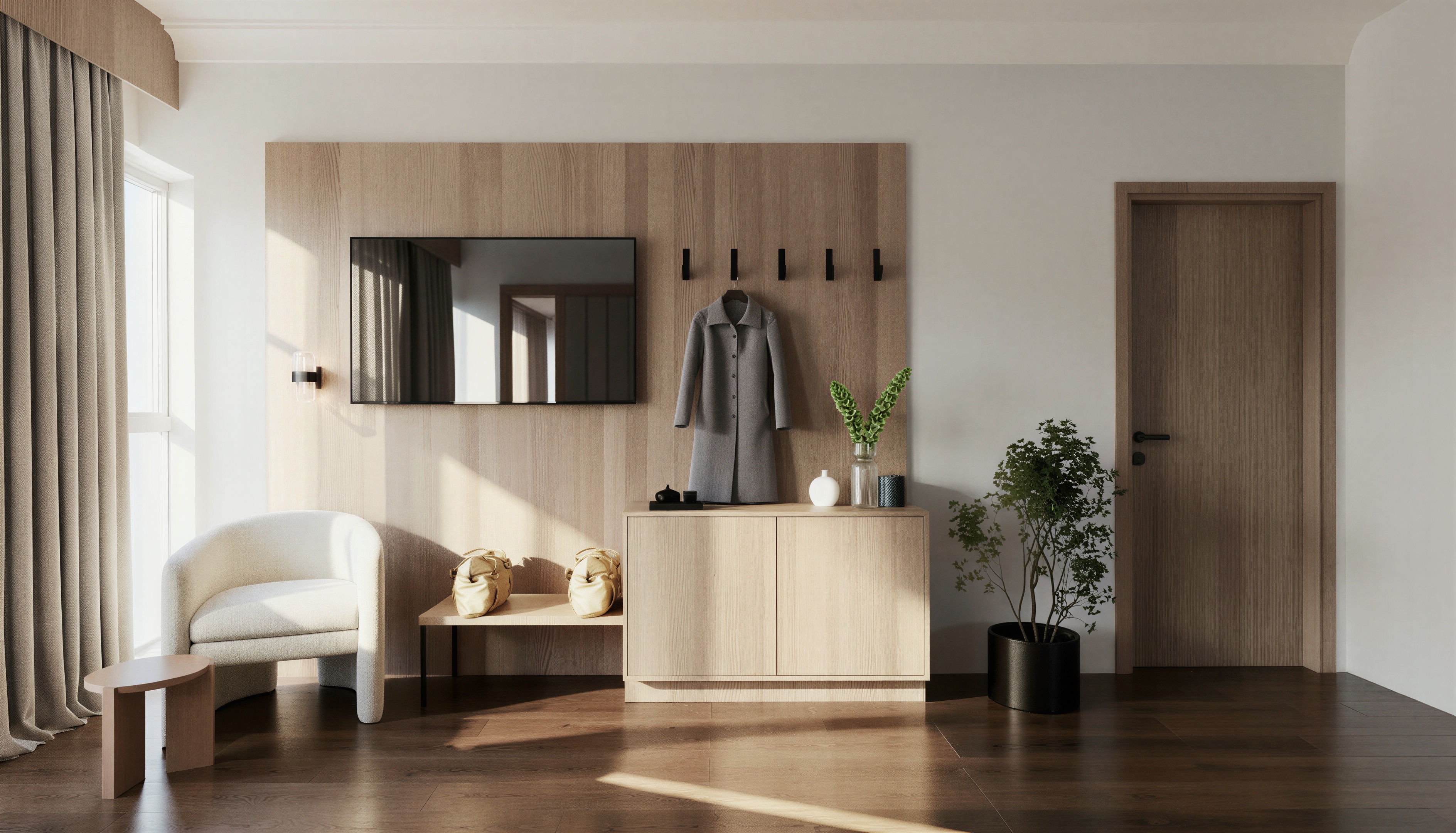 fix the left window area so the curtains extend fully to the end of the wall on the left side creating a continuous full height curtain treatment the curtain should finish cleanly at the wall edge with natural folds and proper alignment without leaving an exposed gap between the curtain and the wall end add this too for control keep the curtain design fabric color and realism consistent with the rest of the room only correct the left side termination so it runs properly to the wall end negative prompt add curtain gap short curtain misaligned curtain exposed wall edge broken curtain line changed curtain style