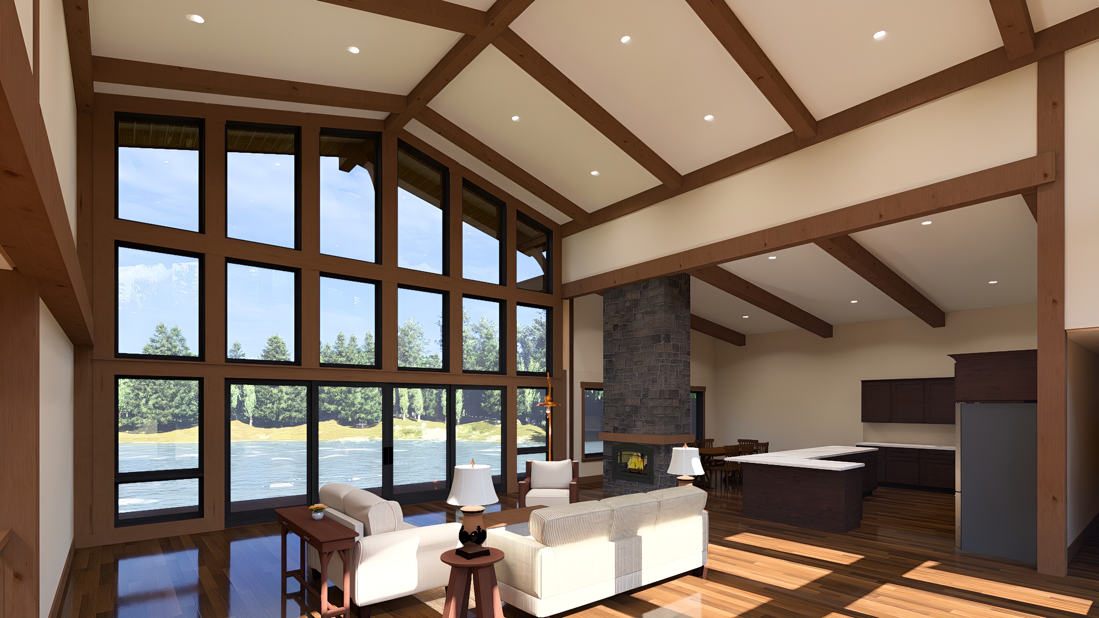 make this interior look realistic add a chandelier over dining table add a few items on kitchen and add a hanging light in the main family area