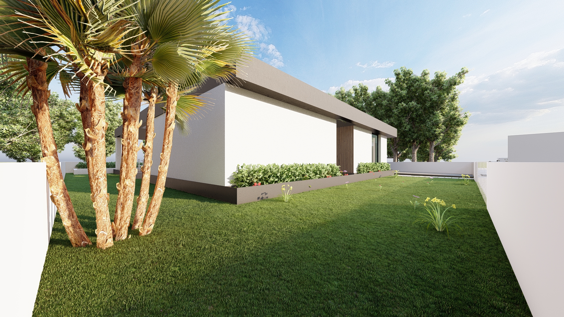 cena hiper realista exterior vegeta o relva verde macia pequenas flores no jardim