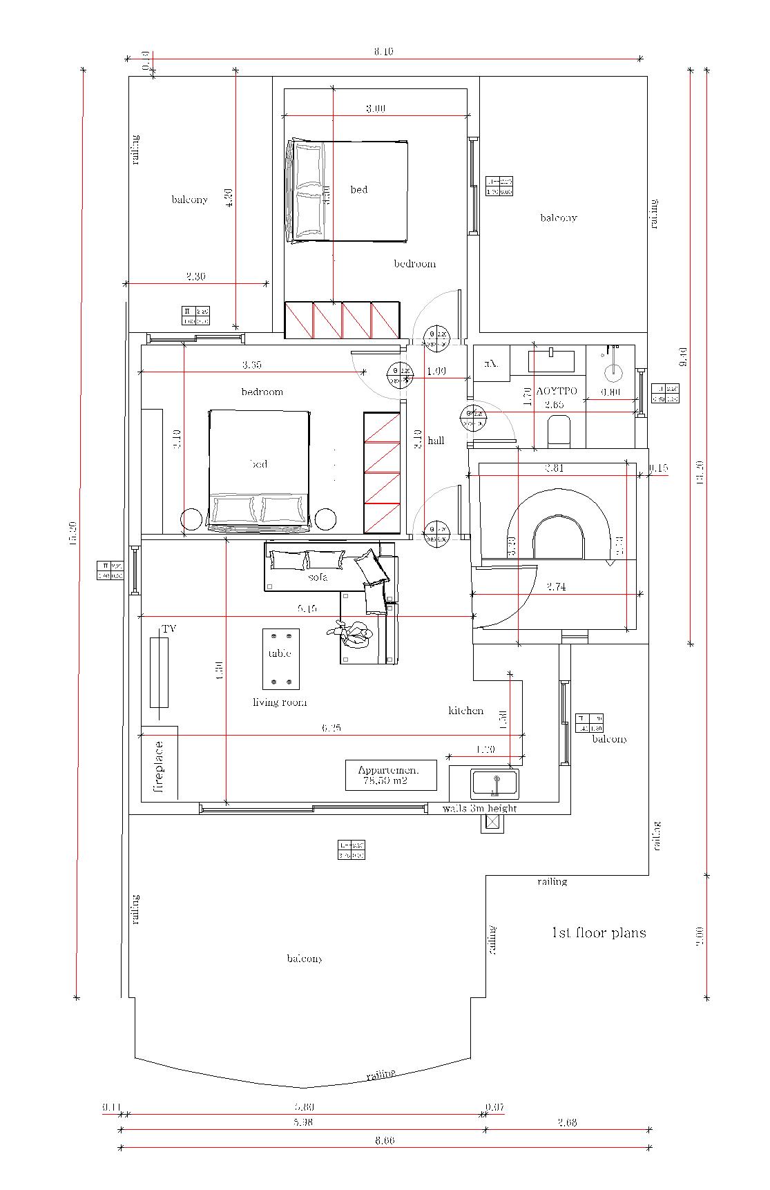 renovation plans for an appartement in athens alimos wooden floor 12cm width straight lines windows with curtains all text in the photo gives description of what is every object near or on it