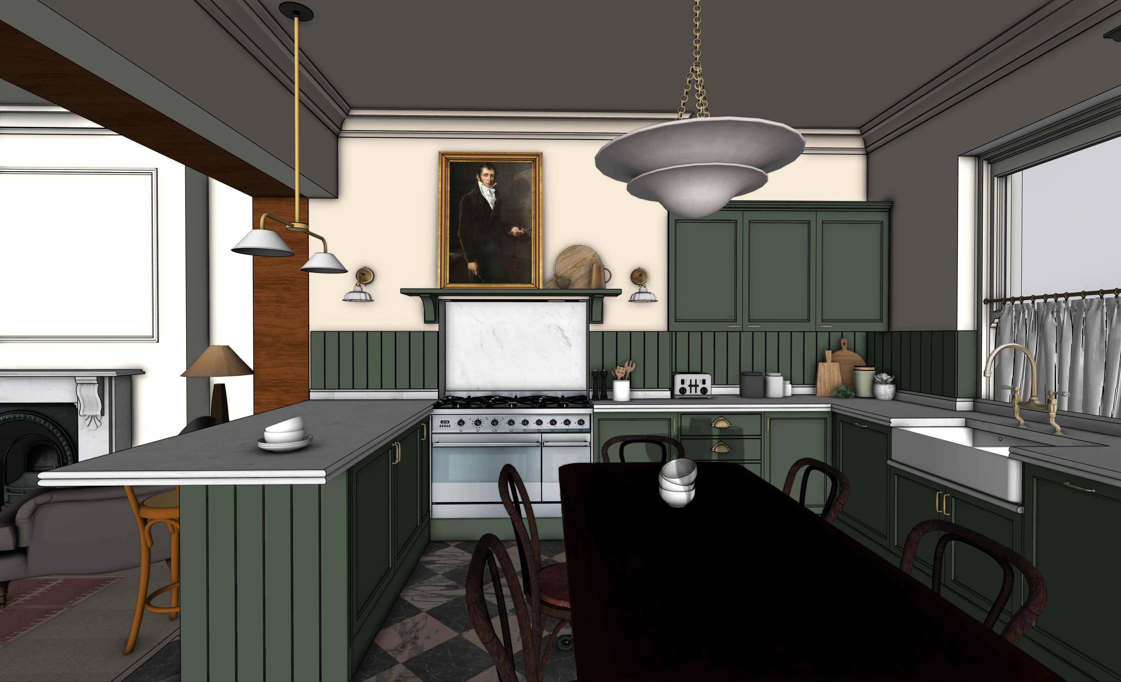 summer lighting soft honed marble worktop and pink and black chequered marble floor