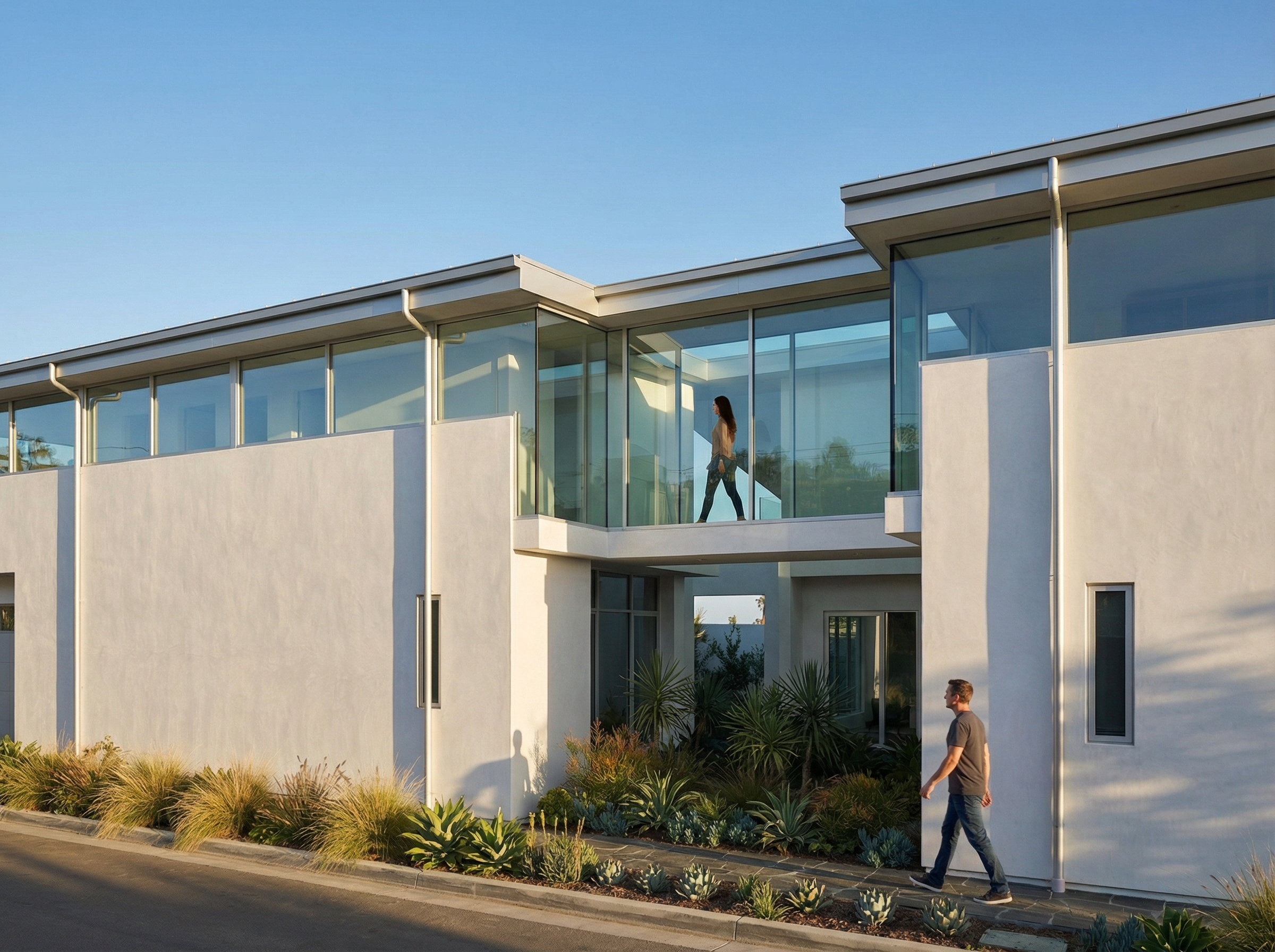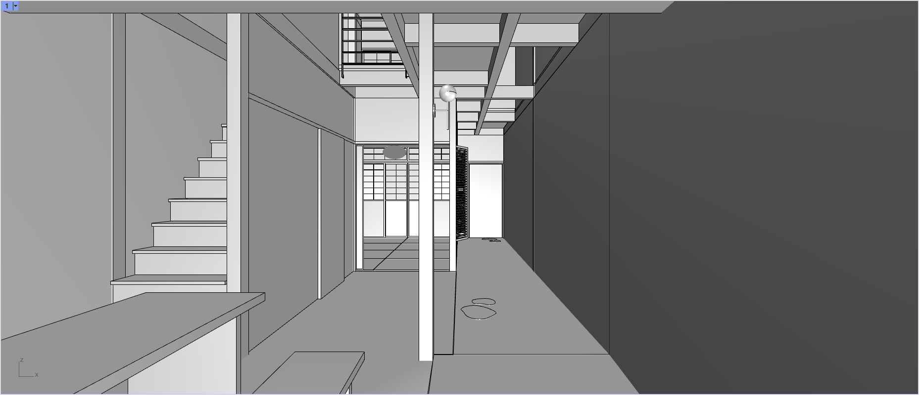 make it into japanese machiya feel make a japanese garden beyond the windows the right wall in tadao ando type of concrete