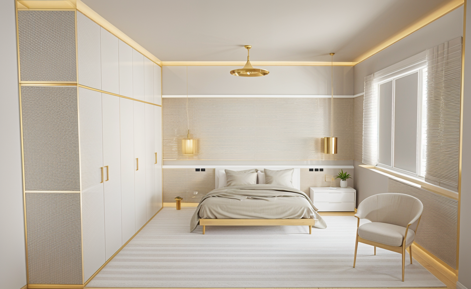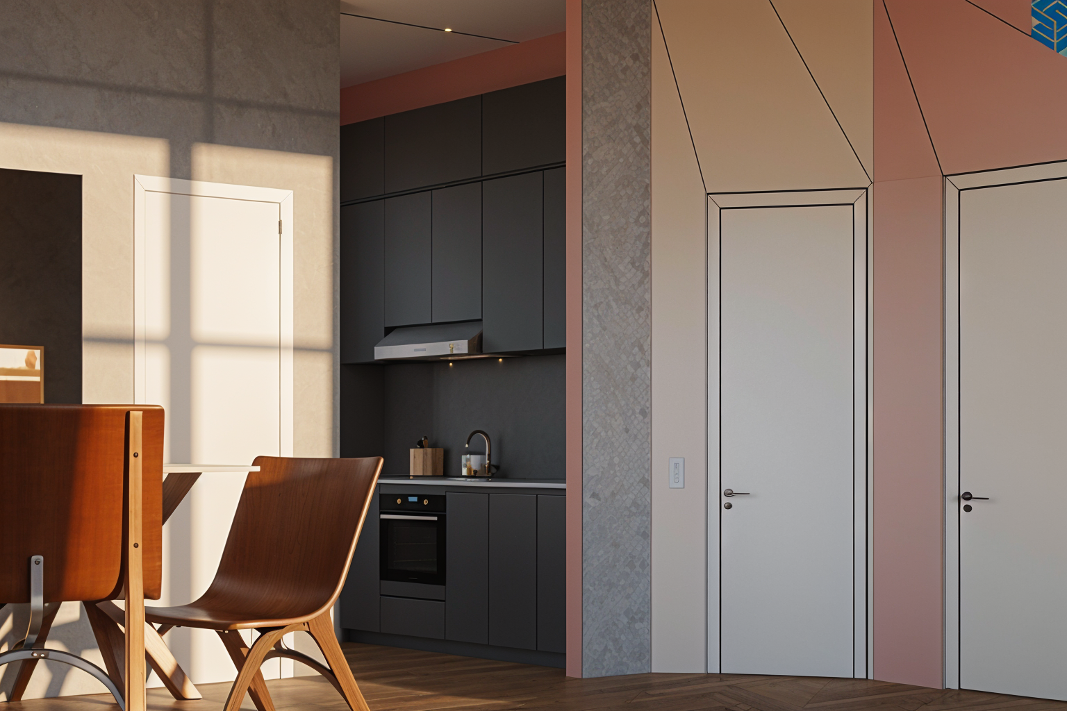 create a realistic interior render showcasing the existing furniture and flooring with their original textures preserved exactly as provided provide illumination for the light fixtures and under cabinet lights retain flooring texture add lights in the skirting