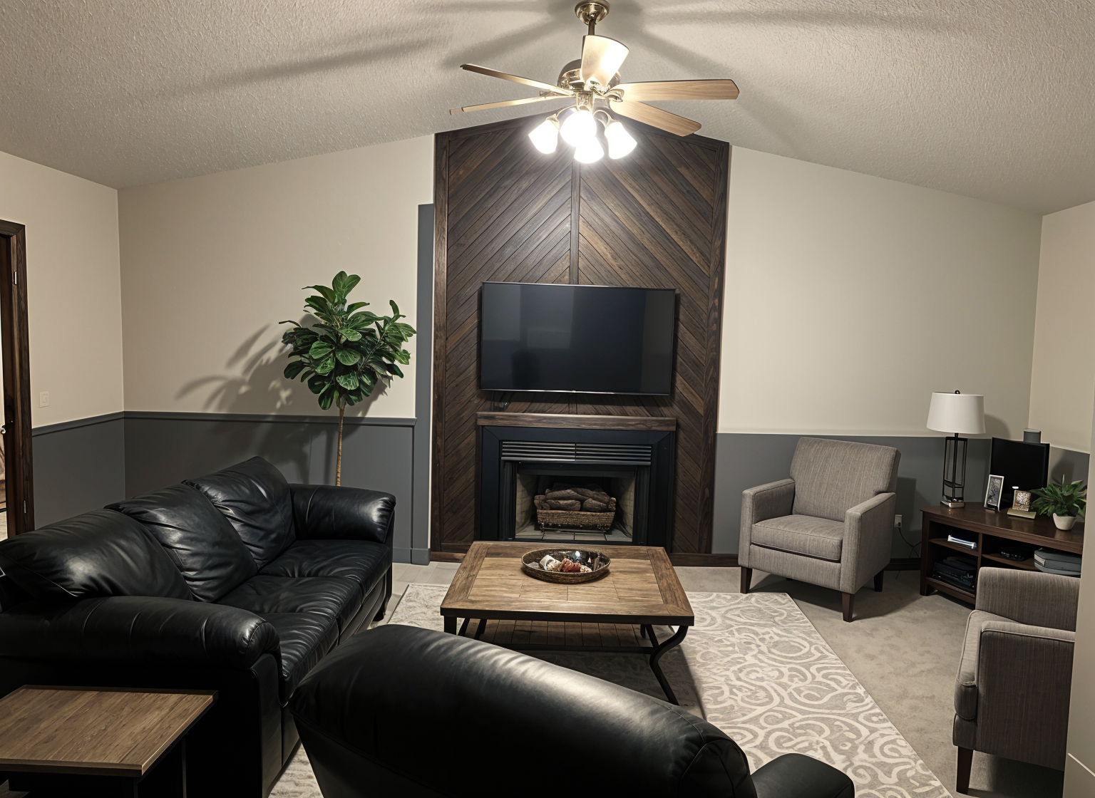 create high resolution photo with plush trees and bushes with vibrant blue sky keep all details exact as original match existing colors match exterior materials exact