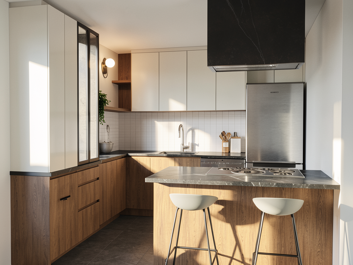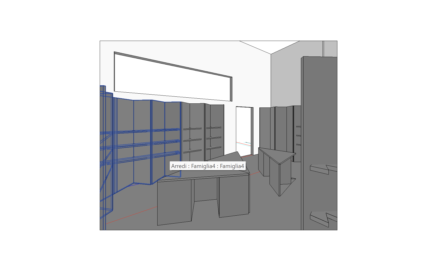 now using this plan and keeping the proportions unchanged create the floor in light gray spatula applied resin create all the furnishings both those against the walls and those in the center in recycled cardboard the window at the back has trees as a backdrop the hole in the wall overlooks the other continuous internal exhibition on the central triangles there are open design books to browse while on the modules on the walls a few art books and some gadgets
