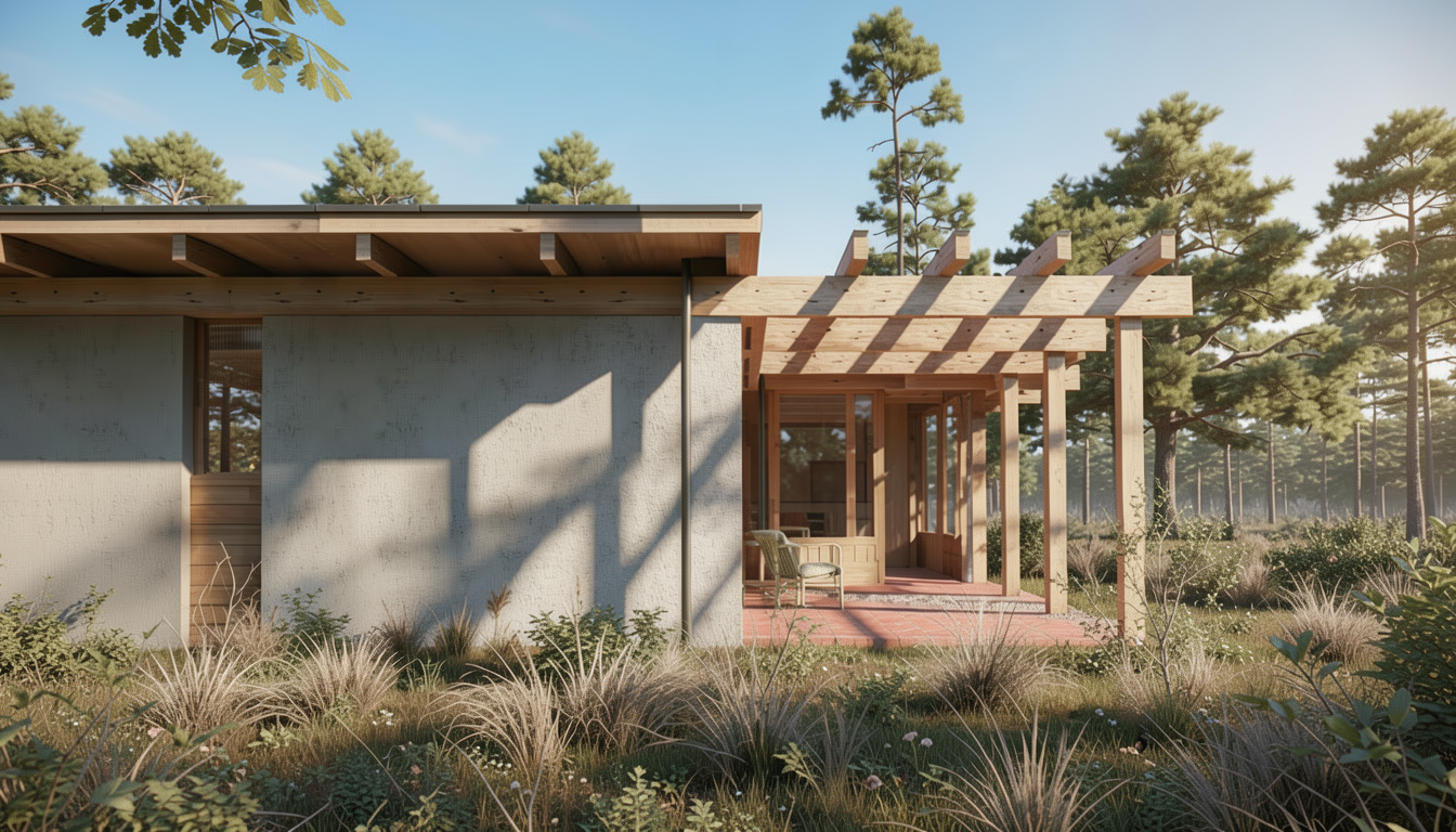 render a photorealistic 3d bird s eye view of this villas using white plaster for the walls brown masonry tiles on the roof brown gutters brown windows frames exterior concrete pavement green hadges green garden whit some tree and vegetation don t add path in the garden at the moment
