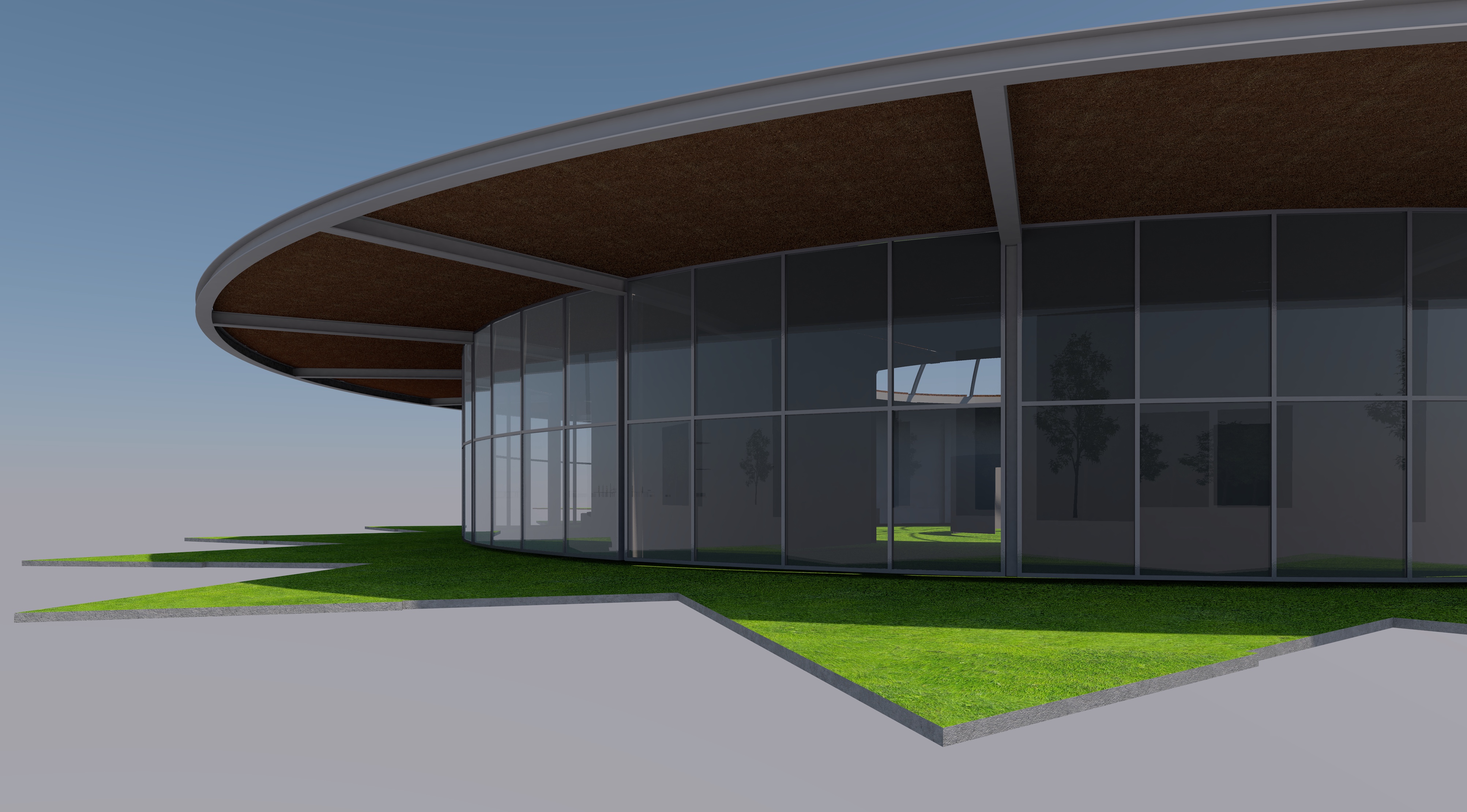 modern exterior shot modern bus station steel construction wooden roof accents horizontale massivholzdecke glas facade sliding doors concrete floor located in the city shadow cast by sun city buildigns in the background german architecture