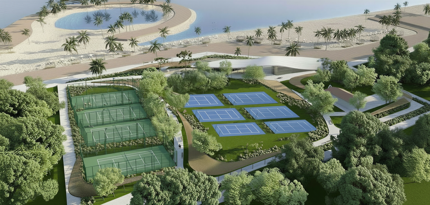 transform the provided restaurant interior image into a high end photorealistic render with warm golden hour atmosphere soft glowing highlights and relaxed upscale coastal energy while keeping everything exactly the same proportions same bar shape same booth seating same ceiling curves same wall finishes same curtains same materials and same spatial configuration do not move or alter any objects geometry textures colors or furniture the arrangement of chairs throughout the restaurant should remain consistent in both location and proportion the bar stools ought to be upholstered in a rich reddish brown leather with a subtle natural sheen and a cushioned tactile texture that appears realistic the dining chairs at the tables should appear in the same reddish brown tone but upholstered in soft velour with a matte plush surface and gentle directional nap while keeping their shapes frames and positions unchanged add premium table settings including wine glasses champagne flutes tropical style cocktails elegant plates cutlery cloth napkins and a seafood tasting arrangement with oysters while keeping all tables and chairs in their exact positions preserving the bar s structure and alignment the mosaic seafood display counter must clearly appear filled with ice fish lobsters shrimp and shellfish with cool reflections moisture and texture while keeping its exact position and shape unchanged on the bar shelves add wine bottles and premium alcohol bottles arranged tastefully keeping the shelving structure unchanged the shelving should feature warm and bright accent lighting enhancing reflections and bottle silhouettes the wall behind the bar shelves must clearly appear as amber glass in a deeper richer golden amber tone with a ribbed textured surface and illuminated from behind with warm vivid backlighting while maintaining its exact geometry proportions framing and alignment lighting should emphasize golden hour warmth gentle reflections soft shadows enhanced color richness and luxurious catalog level realism improve depth and realism through wood grain richness marble shine brass highlights fabric texture and polished clarity while keeping the entire scene exactly as originally designed