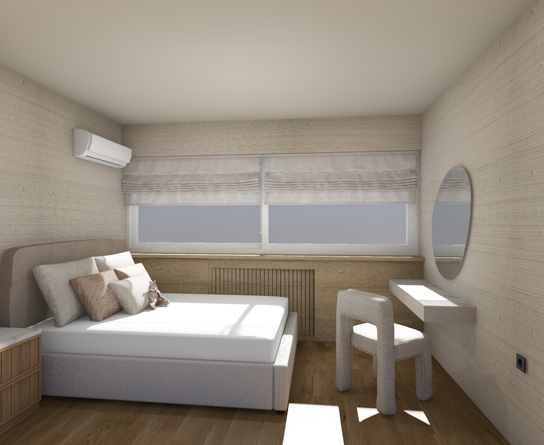 create a realistic interior room led on the mirror on the right bright wood oak panel where the radiator is on the front