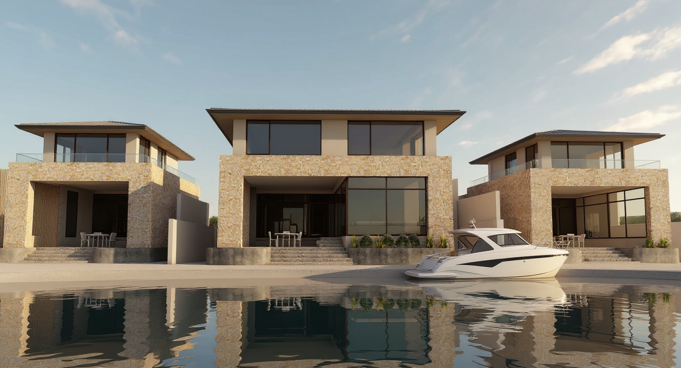 mid sunny afternoon classic homes on both sides large yacht on the straight water