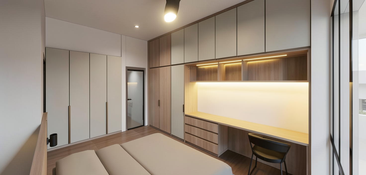 mantieni texture immagine pavimento come texture immagine muro come intonaco esterno bianco accendi faretti a soffitto aggiungi due cuscini decorativi azzurro polvere aggiungi dei libri sulla sedia mantieni parte del muro azzurro polvere come immagine