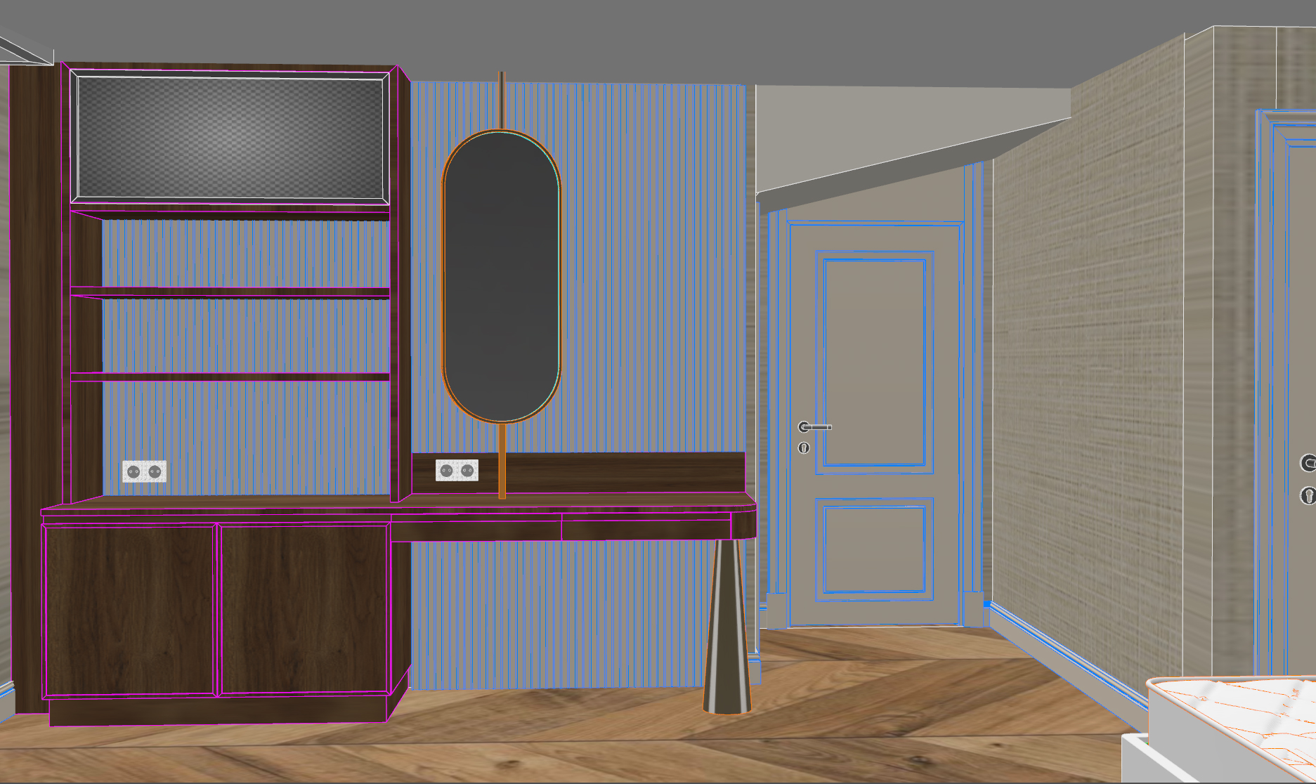 slatted panels in light beige color let the room be bright with daylight and ceiling spot lighting you can make the wood tone light