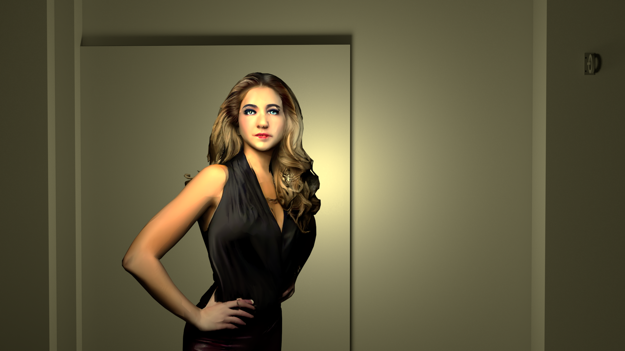 put more texture in back grey wall the light yellow is on night in a tv show with fog