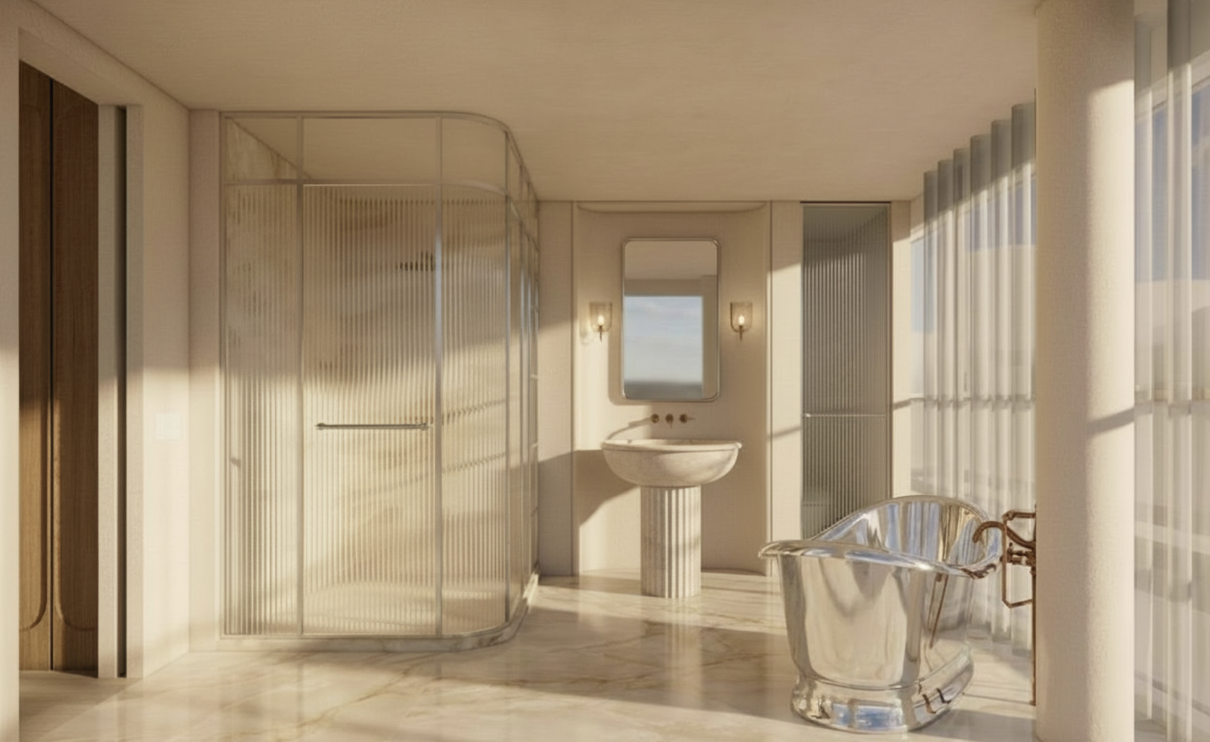 make this pedestal sink ceppo marble with subtle pink and beige marbling