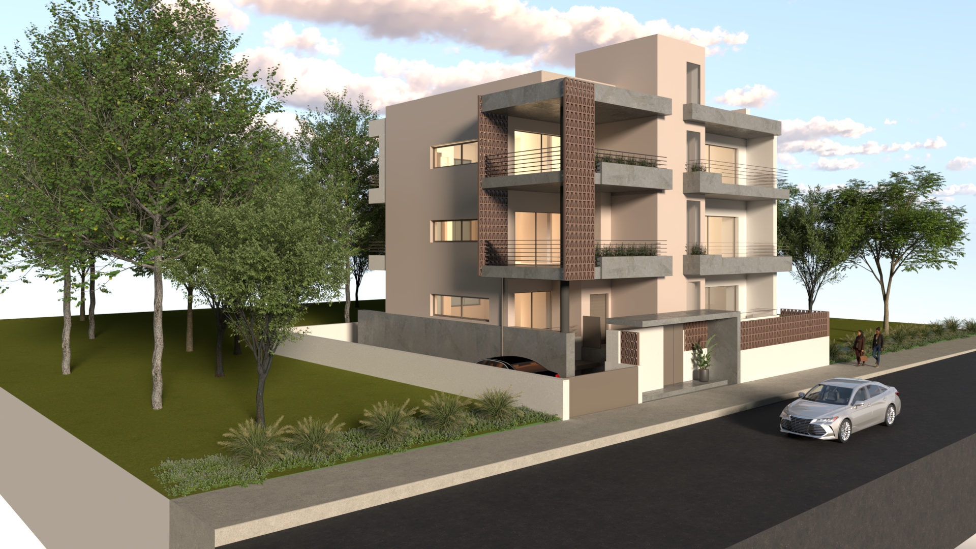 render a hyper photorealistic 3d perspective of this house located in nafplio greece keep the exact same model geometry without changing the architecture including the windows doors roof walls garage door pavement and driveway enhance the existing materials so they appear more realistic and high quality with natural textures and realistic glass reflections improve the surrounding landscape with lush mediterranean vegetation appropriate to the nafplio region such as olive trees mediterranean shrubs aromatic plants and natural planting use clear mediterranean daylight with a bright blue sky and subtle atmospheric depth lighting should feel natural and balanced creating realistic shadows and depth in the scene maintain the same camera view and composition while only improving materials lighting and landscaping render in ultra realistic architectural visualization quality cinematic lighting highly detailed textures professional architectural photography style hyper realistic rendering 8k resolution