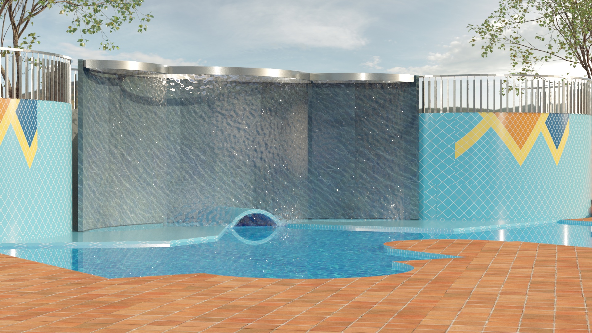 a pool curtain that flows into the pool