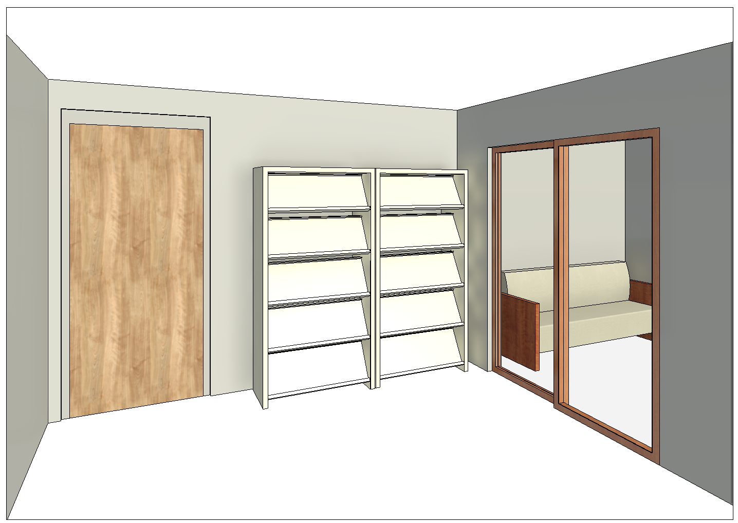 classical interior shot this is a resource library in a very residential designed office lobby it should have a curtain on the glass door that leads to a very cozy private meeting space think therapist s office architecture