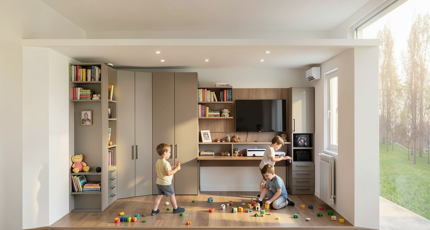 crea una imagen fotorealista a partir de esta de sketchup realza las texturas a ade iluminacion perimetral tenue en el techo