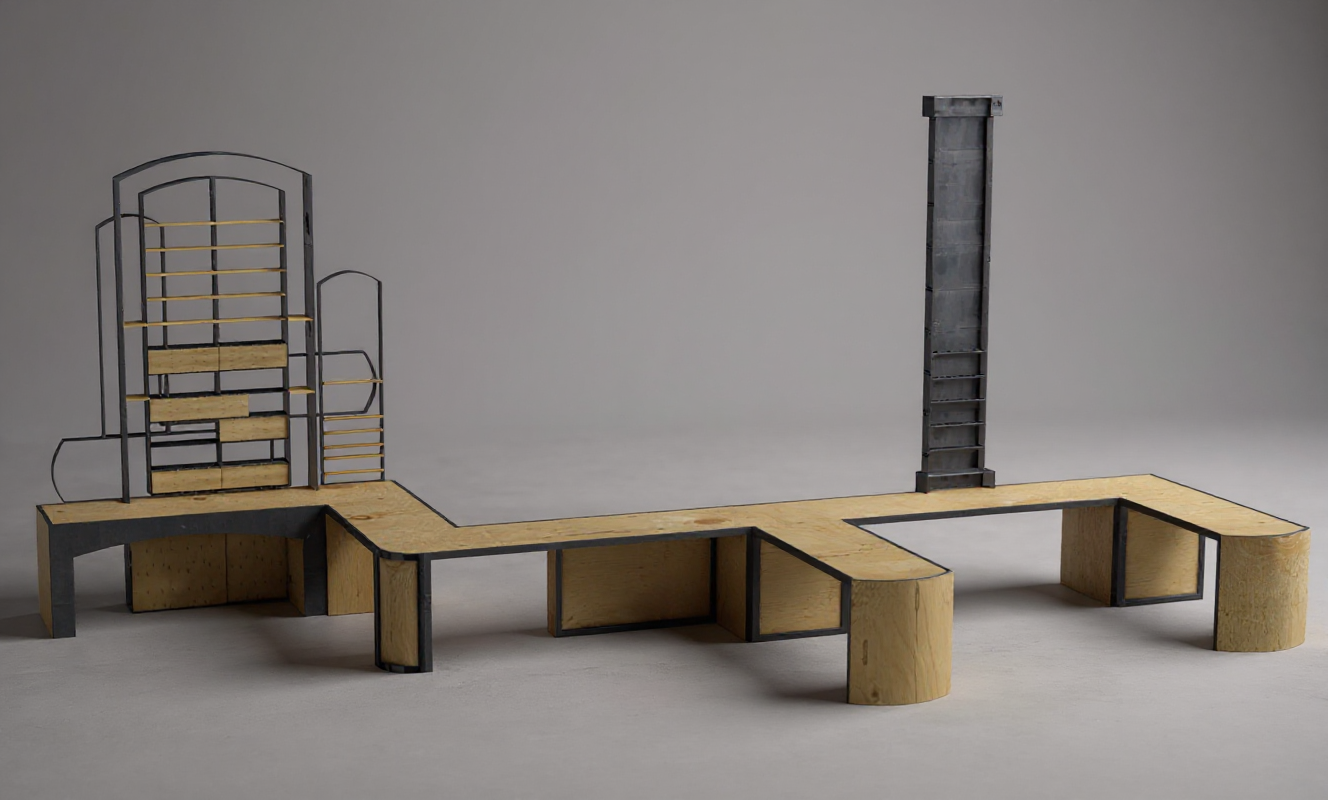 modernist perspective shot render a modern multi level kindergarden with a unique geometric design the exterior walls are a light cream color and the large glass windows reflect soft natural light the terraces have warm rich wooden flooring the flat rooftops feature lush green grass and scattered trees with a mix of dark green and light pink foliage surround the structure with a clear blue sky creating a serene and peaceful atmosphere the overall ambiance is modern and eco friendly with a touch of elegance add some children that are playing architecture