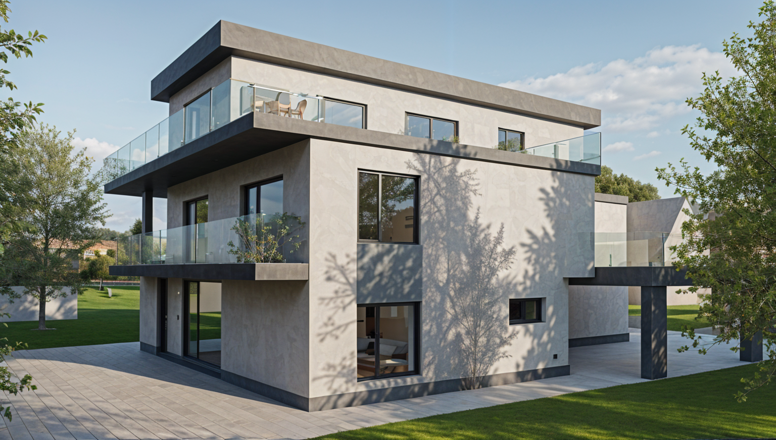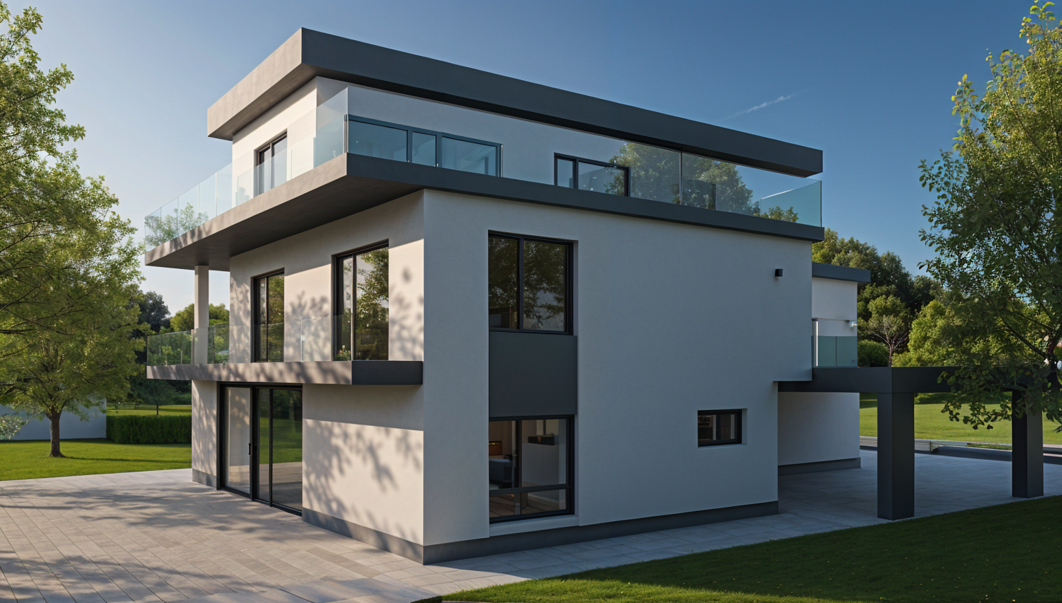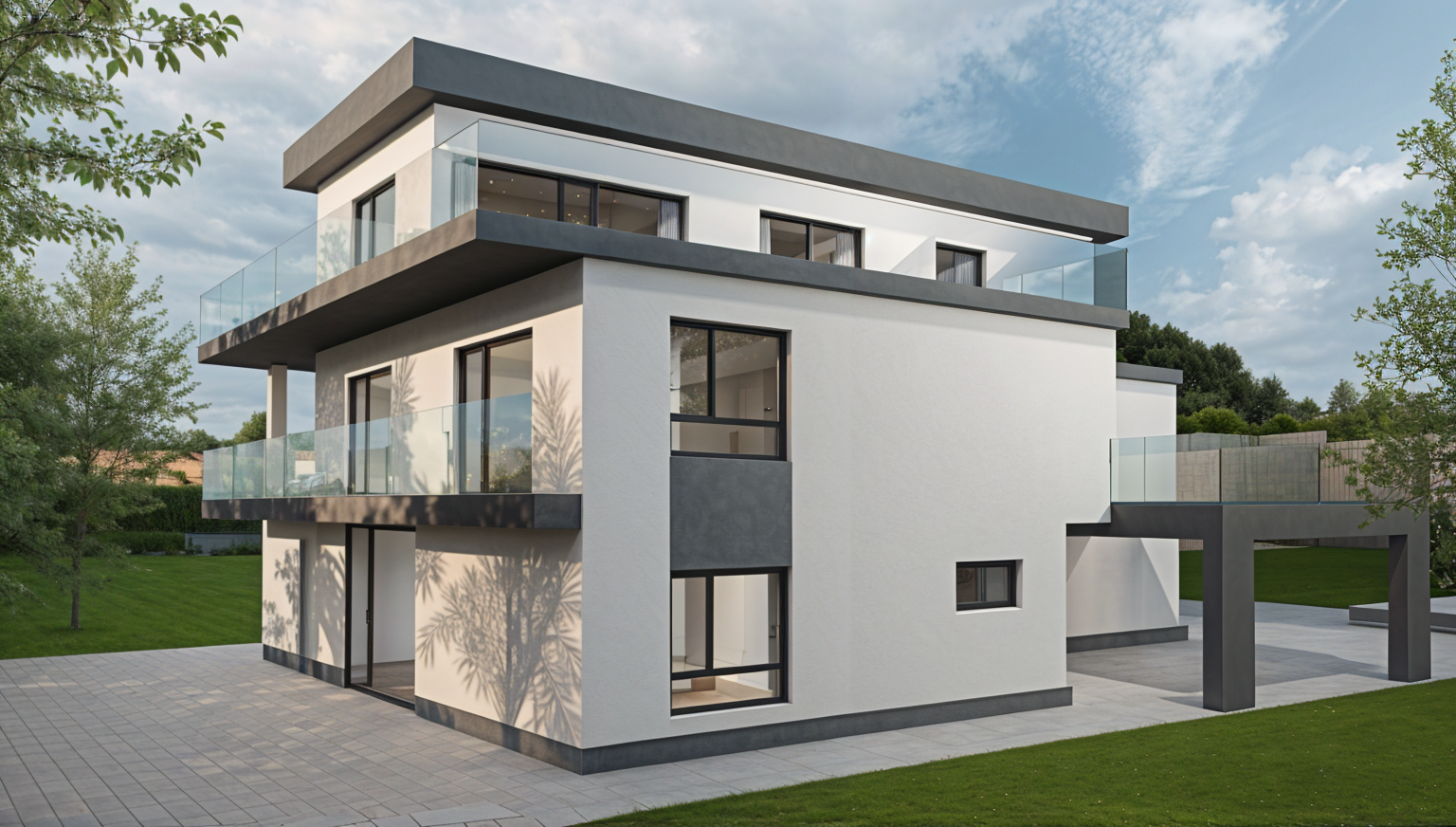 zaha hadid summer weather add trees sunny with clouds smooth facade architecture