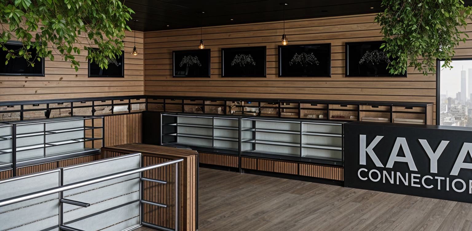 make look realistic add products to the shelves and display cases fill them up add nice lighting the plants above the middle display cases is supposed to be a flat upside down garden with a surrounding ring light the display case in the middle is full of products no bar seating no drinks wood flooring
