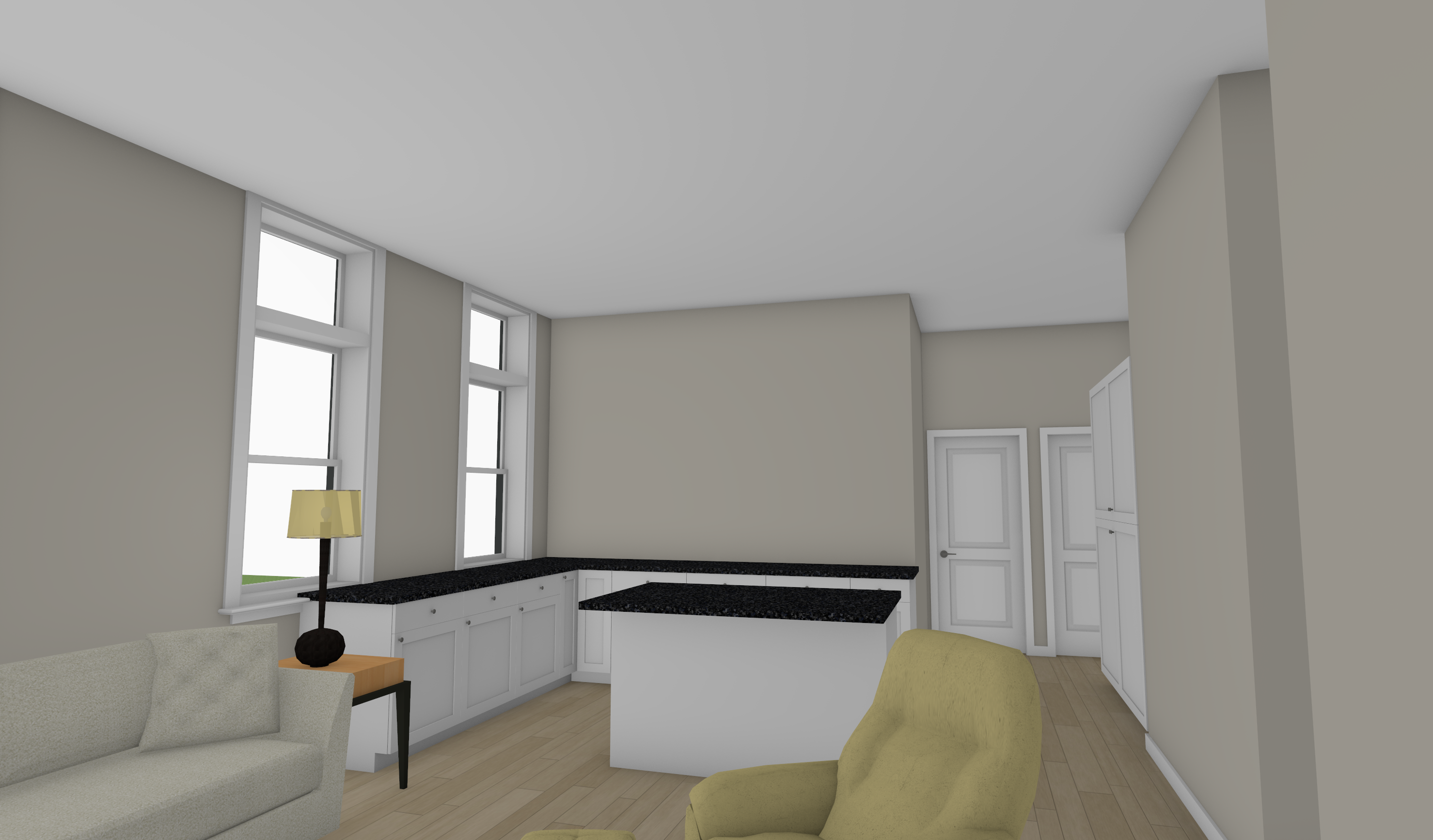 lets generate an interior image that can be used for marketing purposes for this interior unit please add and finalize the kitchen and trim