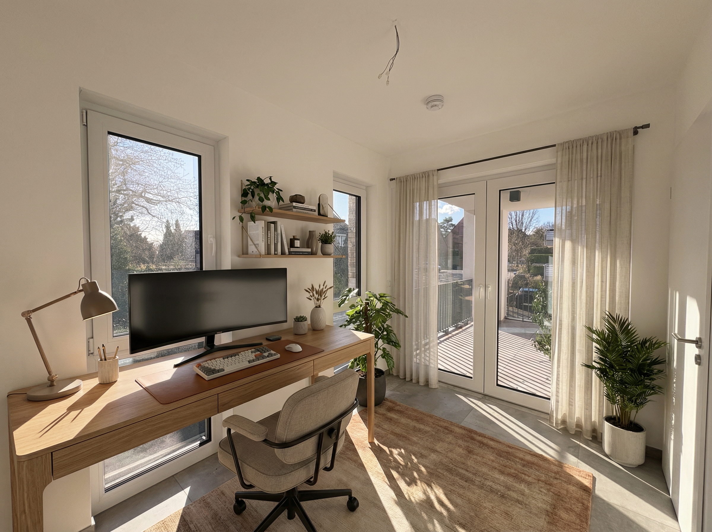 das soll ein home office platz werden richte einen platz f r eine person ein und halte dich an einen hochwertig modernen aber gem tlichen stil achte darauf dass du das grundbild nicht ver nderst der schreibtsich soll auf die linke wand da rechts die t r ist halte einen hochwertigen stil bei