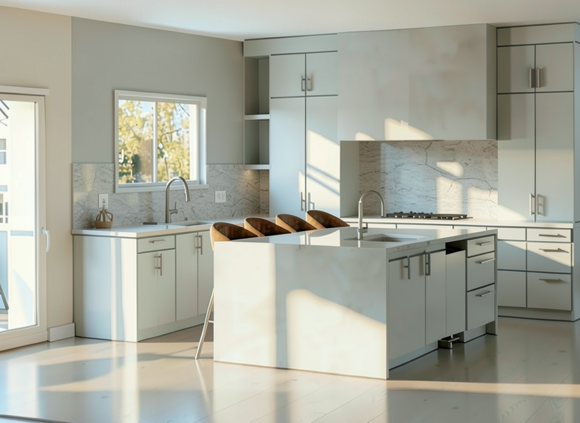 keep everything the exacts same do not change anything color texture or materials only change the backsplash on the window wall to go all the way up to the wall