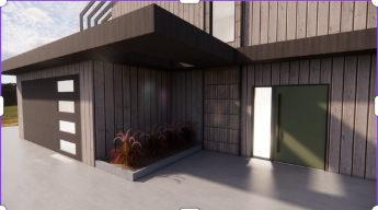 enhance this with exterior lighting and put it at sunset