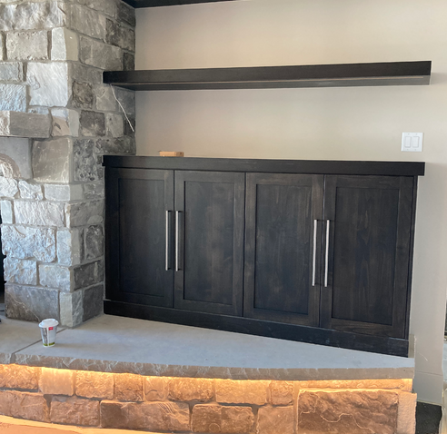 remove the item on the countertop clean the stone stage the countertop and floating shelves with modern mountain decor and accessories remove the cord that is hanging down from the shelf