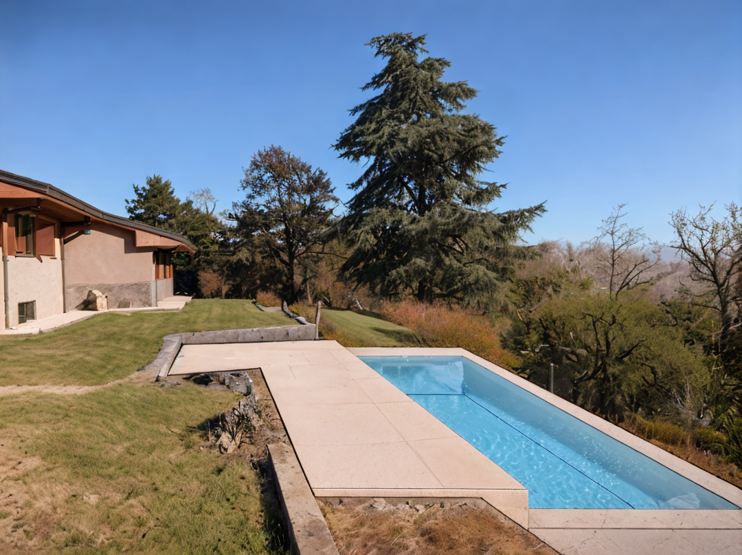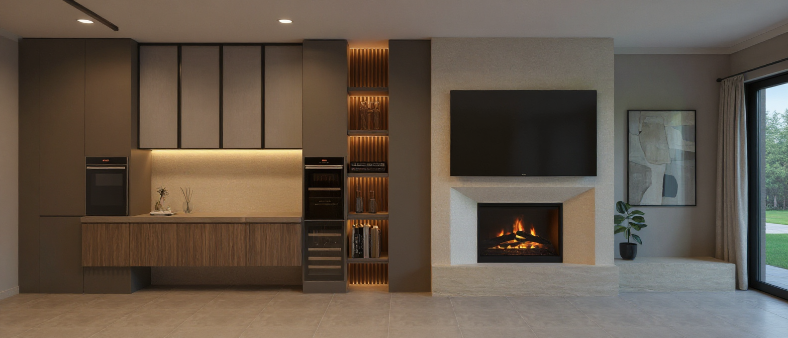 a luxurious living room with modern design featuring expansive white sofas with plush emerald green throw pillows the walls are a soft warm beige to create a cozy atmosphere use a polished wooden floor with a light oak finish place a vibrant blue abstract art piece on the left wall incorporate sleek contemporary ceiling lights with a soft golden glow the large window on the right should display a serene sunlit garden view enhancing the tranquil vibe add a stylish black coffee table between the sofas with chic deco pieces in gold and silver the overall atmosphere should be elegant warm and inviting