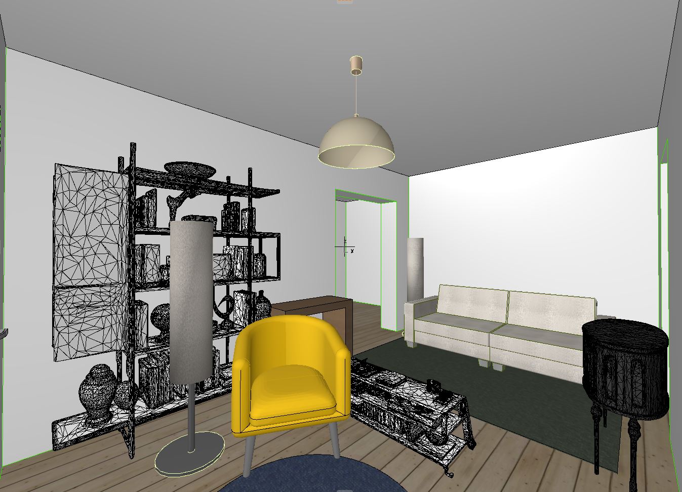 perspective shot 6 a modern and eclectic living room abundant light entering trough the windows of the balcony on the right casting gentle shadows all the walls are white with trim molding frames the skirting is also white the floor is hardwood floor natural finish the sofa and armchairs have soft materials the tv has a panoramic image of a lake the carpet is a modern design carpet the suspended light pendant is white and emites a soft warm light in the background there is kitchen with black cabinets and suspended cabinets with glass doors and black frames enhanced color richness and luxurious catalog level realism improve depth and realism ditorial style photo eye level camera angle time of day noon high detailed cinematic lighting global illumination ray tracing ambient occlusion chromatic aberration anti aliasing post processing super detailed fujifilm 16k ultra detailed the tv has a panoramic image of a lake the sun shining in trough the window soft warm light soft shadows the dresser under the tv has decorative objects and books on the shelves the dresser next to the wall has decorative objects and books on the shelves