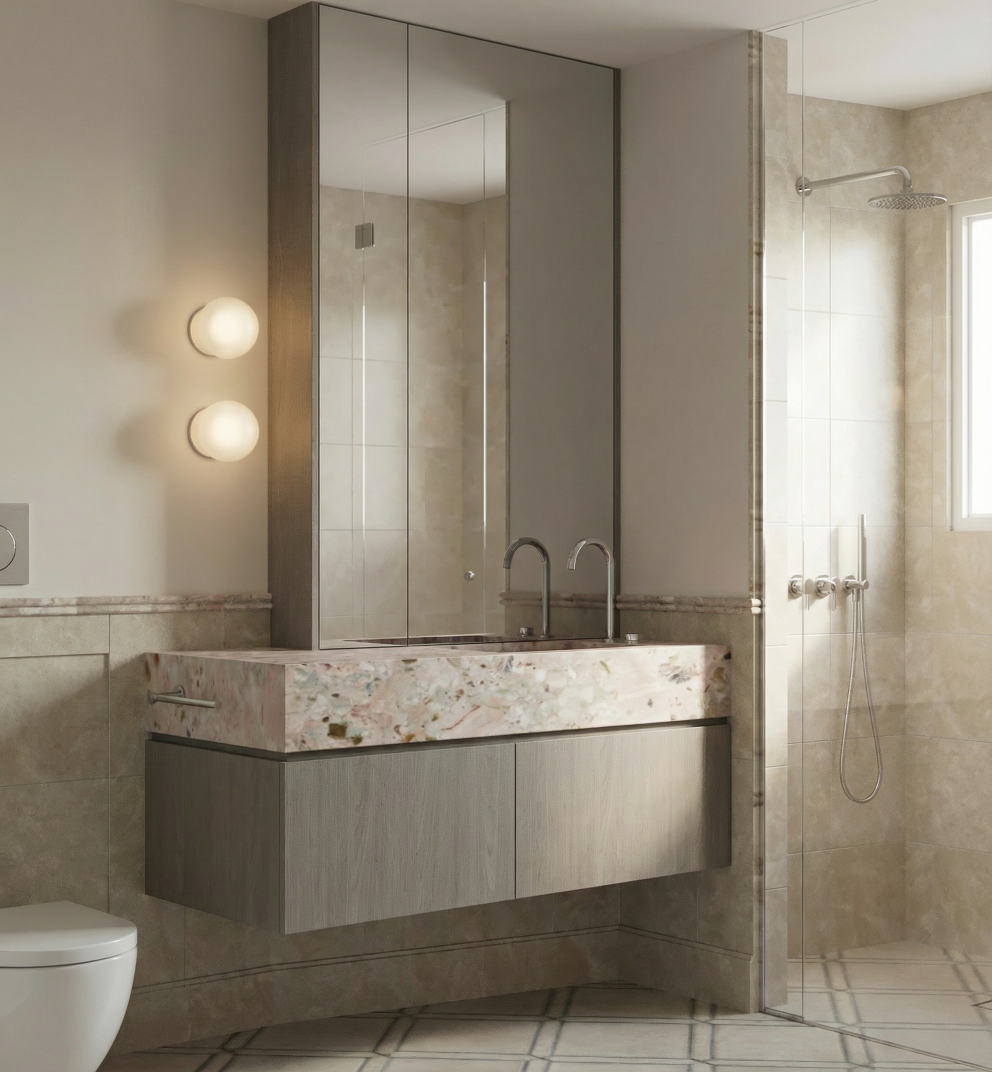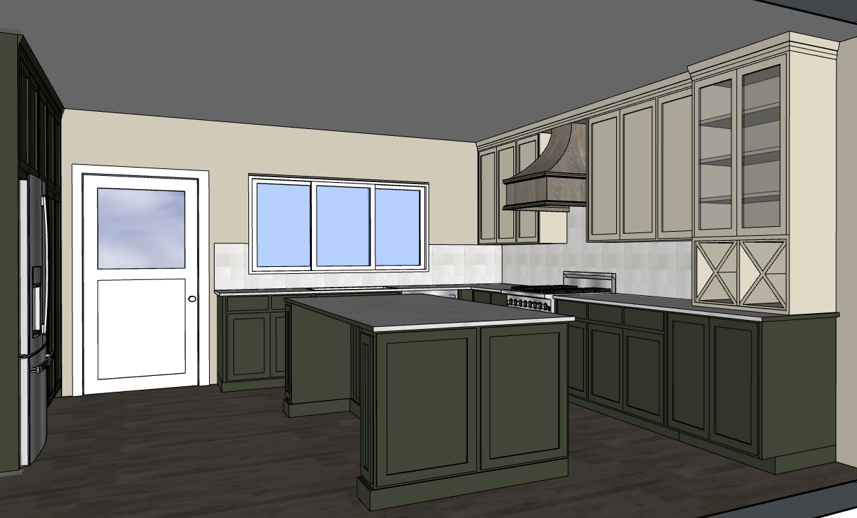 render the kitchen while maintaining all existing materials finishes and color palette exactly as they are do not alter cabinets countertops backsplash flooring or wall colors enhance the space by adding tasteful kitchen accessories such as countertop d cor small appliances or minimal styling elements keeping the look clean and cohesive with the existing design add recessed ceiling can lights to provide even balanced overhead illumination turn on all lighting to create a warm natural and realistic atmosphere update the window by adding a roman shade styled neatly and proportionate to the window through the window include a pleasant outdoor backyard view with greenery such as grass plants or trees ensuring the lighting matches the interior for a realistic effect keep the scene bright realistic and well balanced with accurate shadows and reflections
