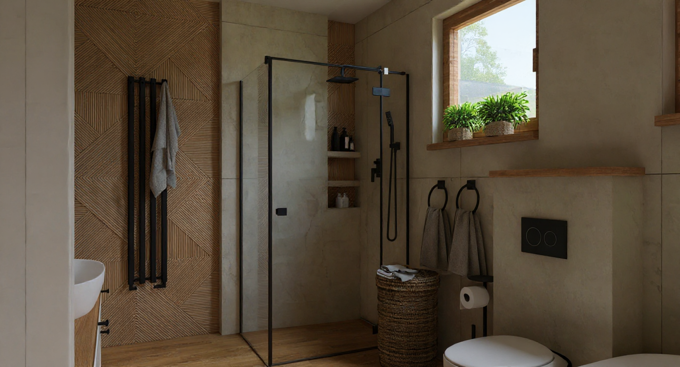 warm vibes the cabinets in white matt surface countertop in oak like the wall behind lightspots on the top for more brightness the floor in beige white tiles like a stone more light in the front of the kitchen